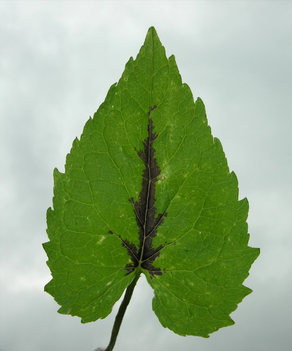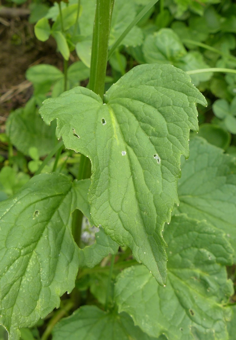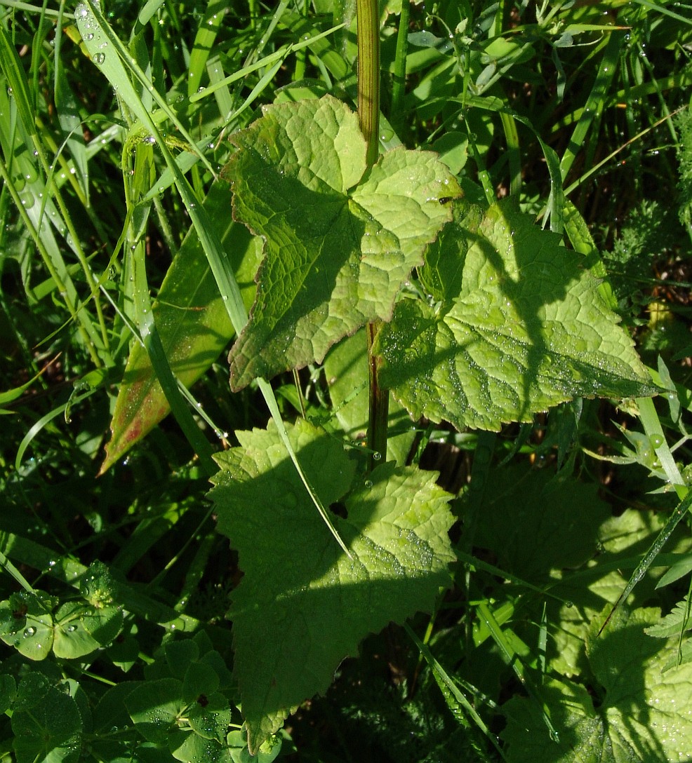 Stängelblätter herzförmig, scharf gesägt, deutlich gestielt