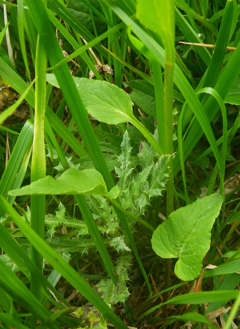 Spreite der Grundblätter nur 2 - 2,5 cm lang, in etwa so breit wie lang