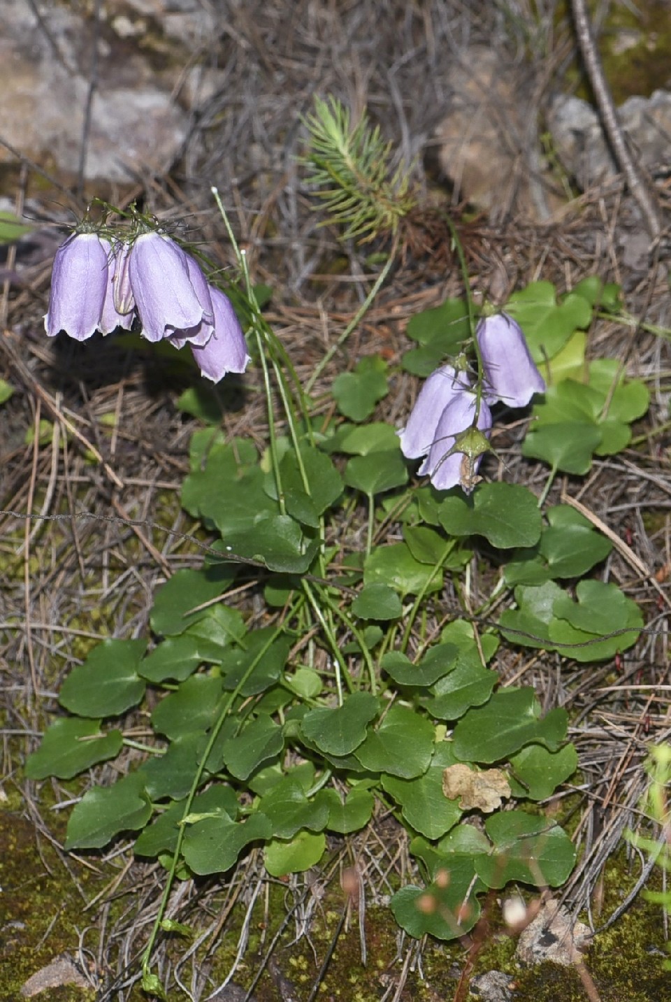 Endemit in Samothraki Stängel 25 - 4 cm hoch, mit 2 - 5 gestielten Stängelblättern Blüten glockig, Kronlappen innen kahl Kelchzipfel spreizend, ganzrandig Hochblätter lanzettlich, so lang oder länger als der Blütenstiel Blattspreite 3 - 6 cm im Durchmesser, regelmäßig gezähnt > 4