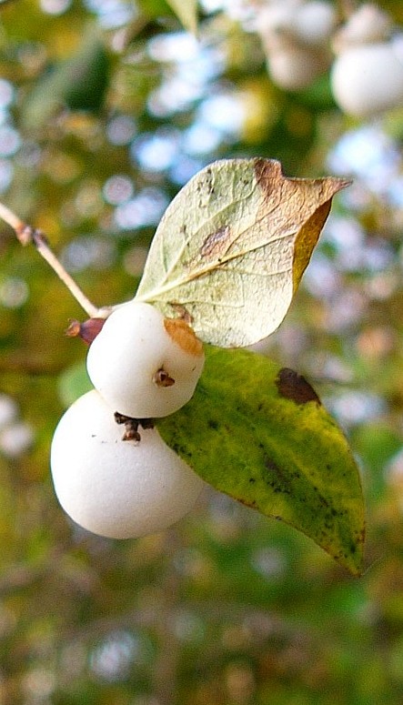 1 Blüte klein, innen stark behaart, Früchte = weiße Beeren
