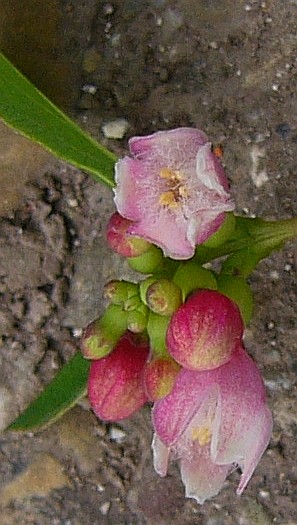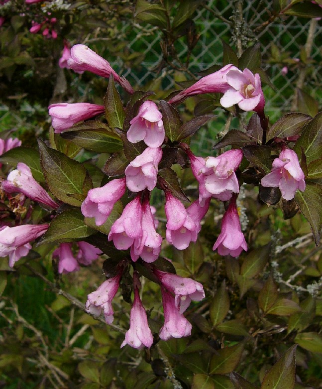 1 - 2 m großer Strauch Blüten in 3 - 4-blütigen achselständigen Büscheln Blüten meist aufrecht, rosa, trichterförmig, Kelchblätter breit dreieckig, bis zur Hälfte verwachsen Früchte: schmal zylindrische Kapseln, bei denen der Kelch als Schnabel erhalten bleibt Triebe behaart