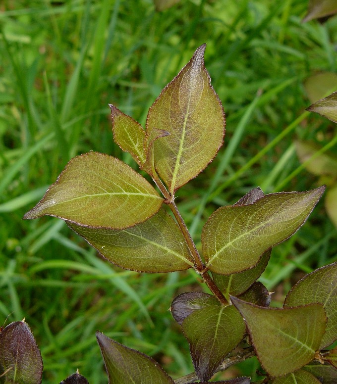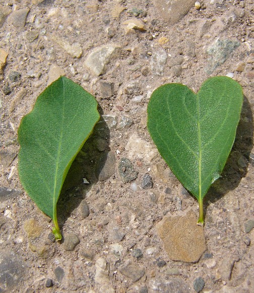 Blätter 3 - 9 cm lang, breit eiförmig, lang zugespitzt, Blattrand schwach gesägt, bewimpert