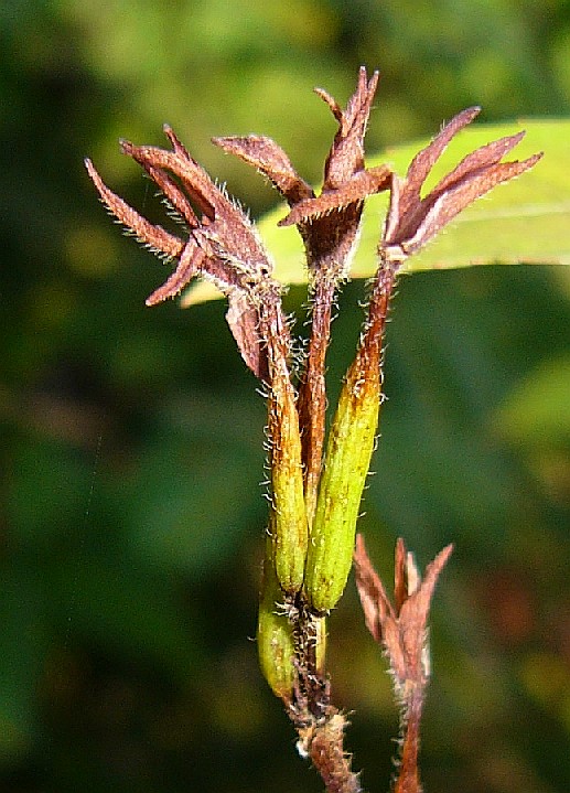 3 Blütenstiel borstig behaart, Kelchblätter linealisch
