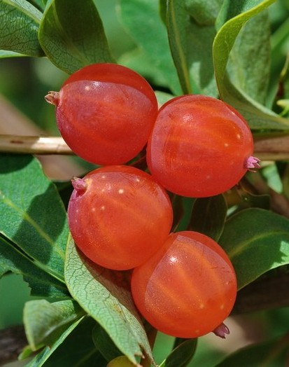 6 Früchte länglich bis eiförmig, frei, 0,8 - 3 cm lang, Zierpflanze