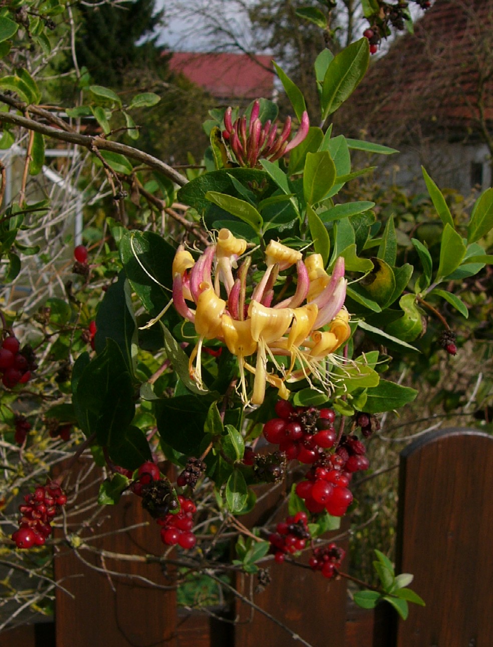 Lonicera periclymenum L. (Deutsches Geißblatt) VI - VIII, Laubwälder, Gebüsche, auch Zierpflanze (50
