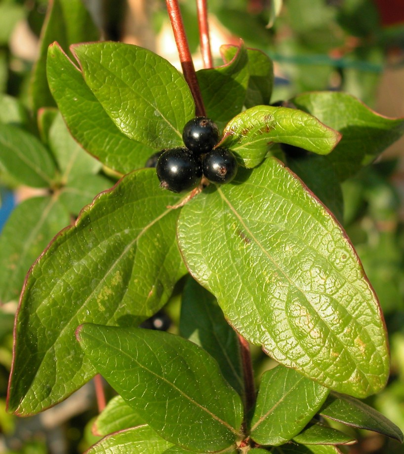 Früchte schwarzblau, 7 mm im Durchmesser, giftig