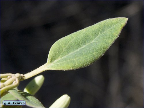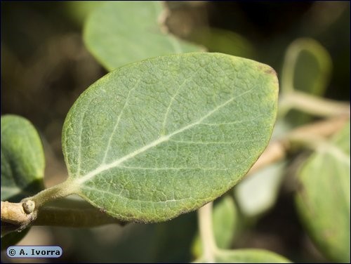 Blätter elliptisch, 3 - 5 cm lang, 2 - 3 cm breit, oberseits verkahlend