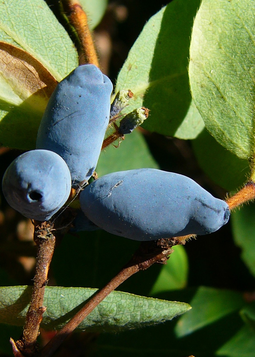 glänzend Beeren rot, blau oder schwarz > Blätter groß, Früchte rot oder blau