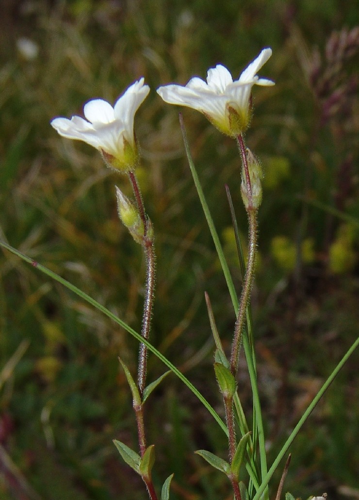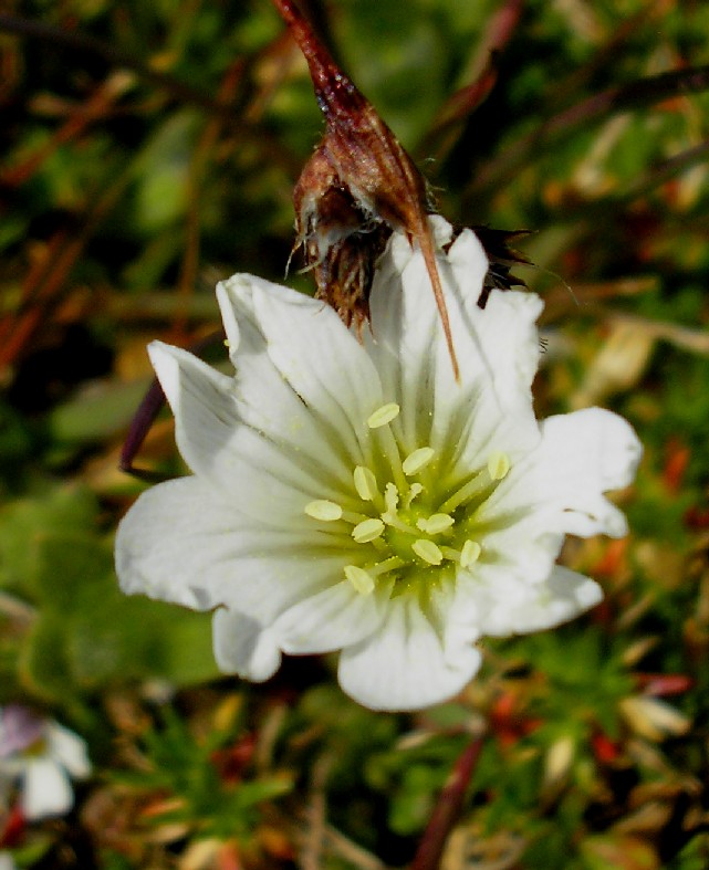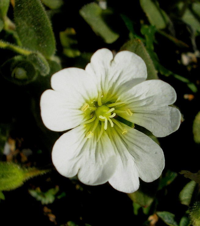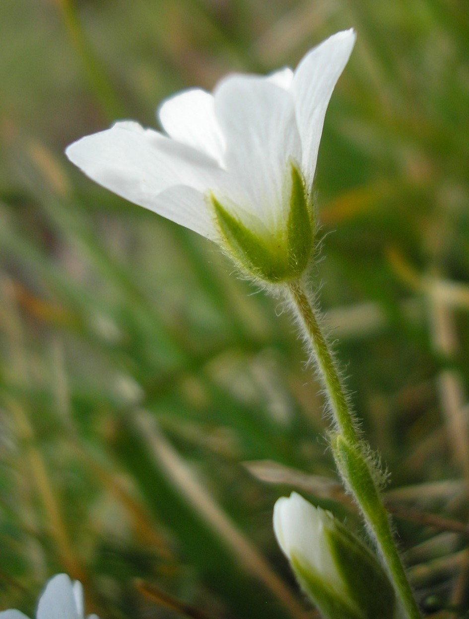 weißfilzig, Blüten weiß, 5 Kronblätter, Kronblätter doppelt so lang wie der Kelch,