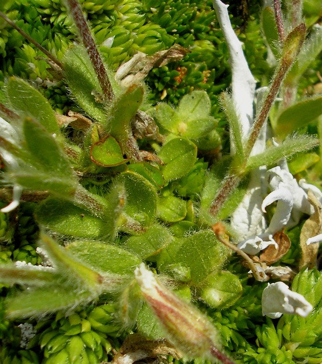 Blätter groß (12 - 30 mm lang, 5 - 10 mm breit), breit eiförmig bis