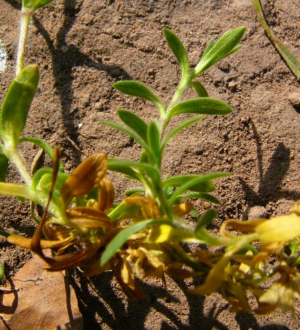 Blätter länglich- lanzettlich, 7 - 25 mm lang, 1 - 5 mm breit, spitz oder stumpf