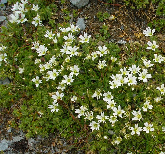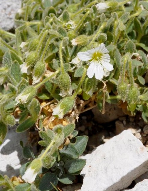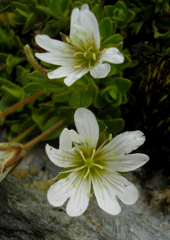 Cerastium - Blüten weiß, 5 Kronblätter, Kronblätter deutlich länger als der Kelch,