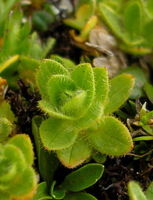 Stängel abstehend drüsenlos behaart, Blätter elliptisch 3 - 10 mm lang, 2 - 4 mm breit, drüsenlos behaart, ohne Blattbüschel in den Blattachseln, sterile Triebe kurz, niederliegend