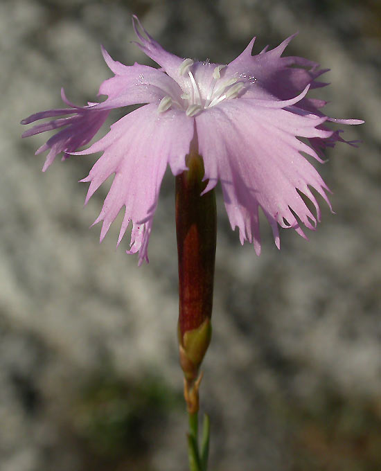 Dianthus - Blüten rosa oder rot, Kronblätter tief eingeschnitten, Außenkelchblätter stumpf oder mit kurzer Spitze