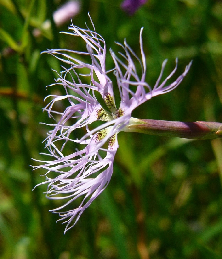 Kronblätter hellviolett oder hellrosa, bis über die Mitte fiedrig eingeschnitten, Mittelfeld länglich, am Grund bärtig