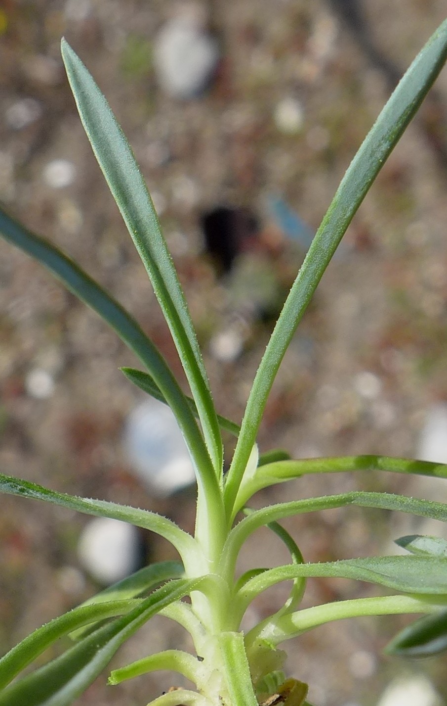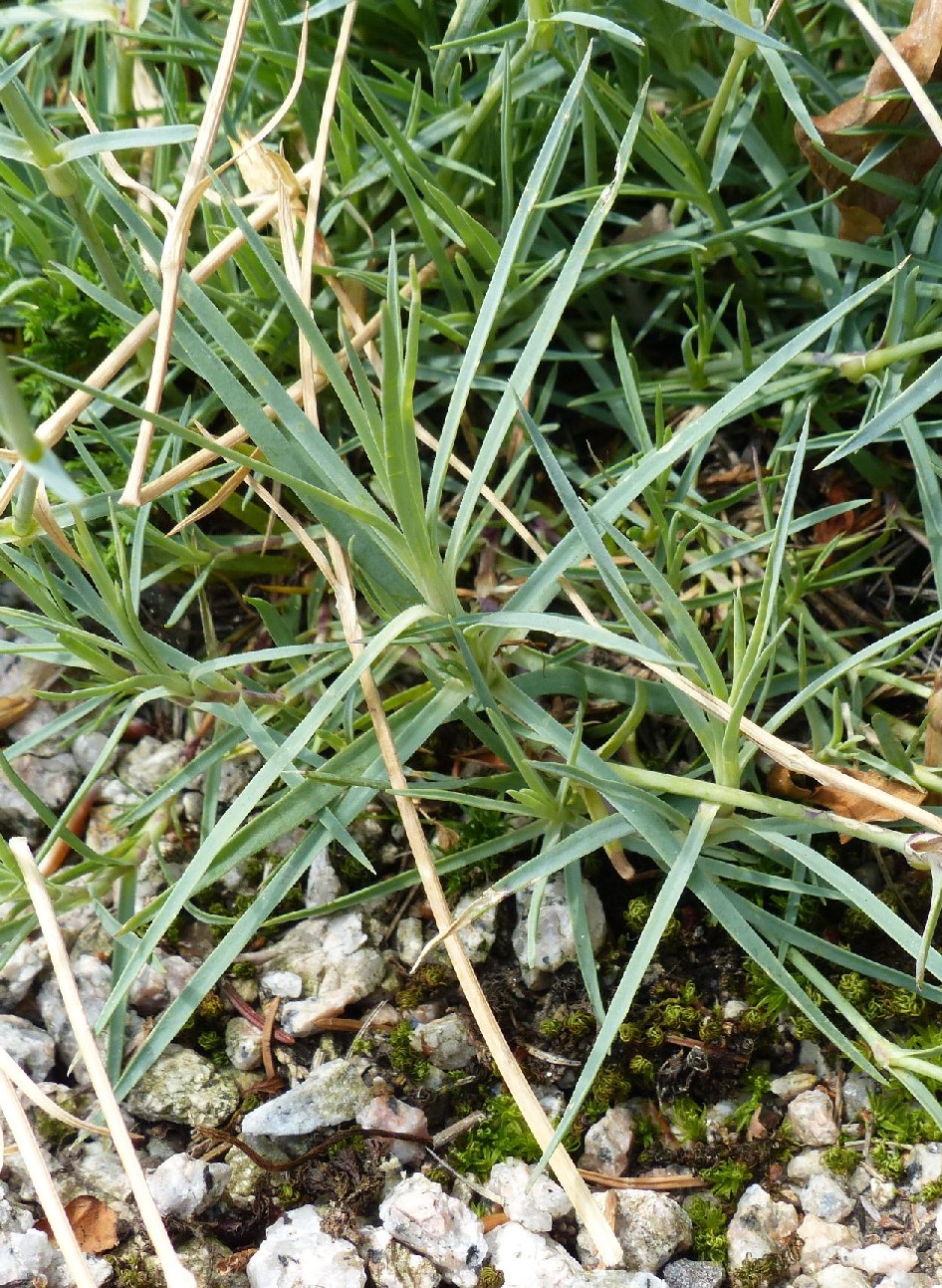 Untere Blätter blaugrün, ca. 1 mm breit, nur im vorderen Teil verschmälert, spitz