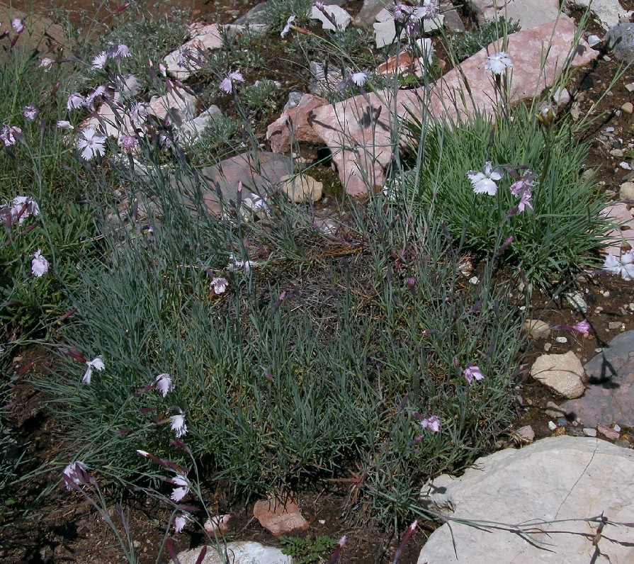 Stängel 1 - 3- blütig Kronblätter zu 20 - 30 % eingeschnitten, am Grund nicht violett bebärtet Außenkelchblätter stumpf, kurz bespitzt Stängelblätter ca. so lang wie das folgende Internodium, bläulich bereift