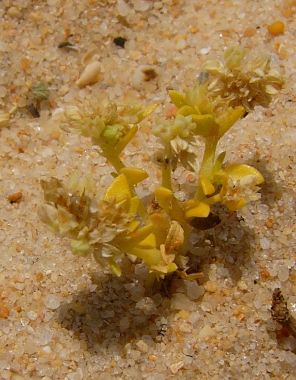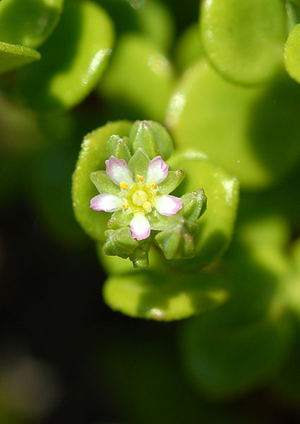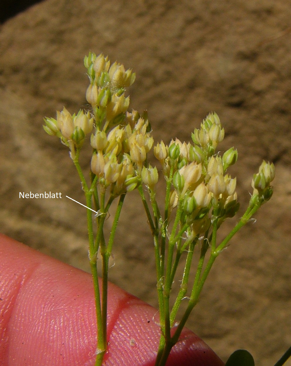 und auf Felsen Pflanze 1 - 15 cm groß, Blütenstandsäste und Blüten kurz gestielt Blätter oft gelblich oder rötlich, zu 2 gegenständig > 2