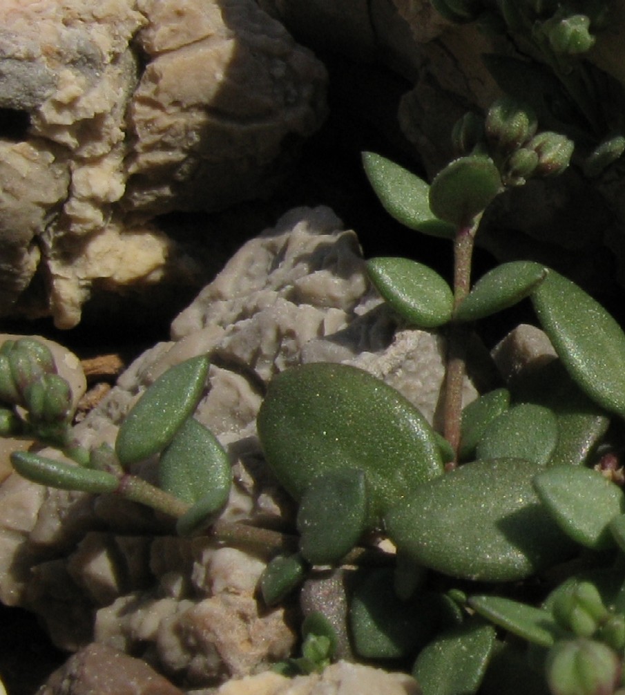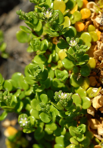 Blätter eirundlich, fleischig, vorne stumpf, die