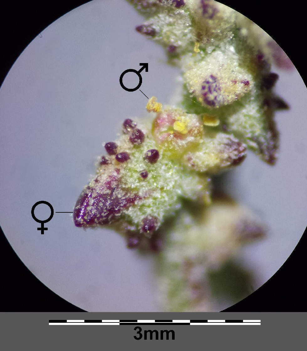 Weibliche Blüten werden von 2 grünen, rhombischen Vorblättern umhüllt, ohne Perigonblätter, sie enthalten nur einen vertikalen Fruchtknoten mit zwei fadenförmigen Narben, später dann den einzelnen Samen