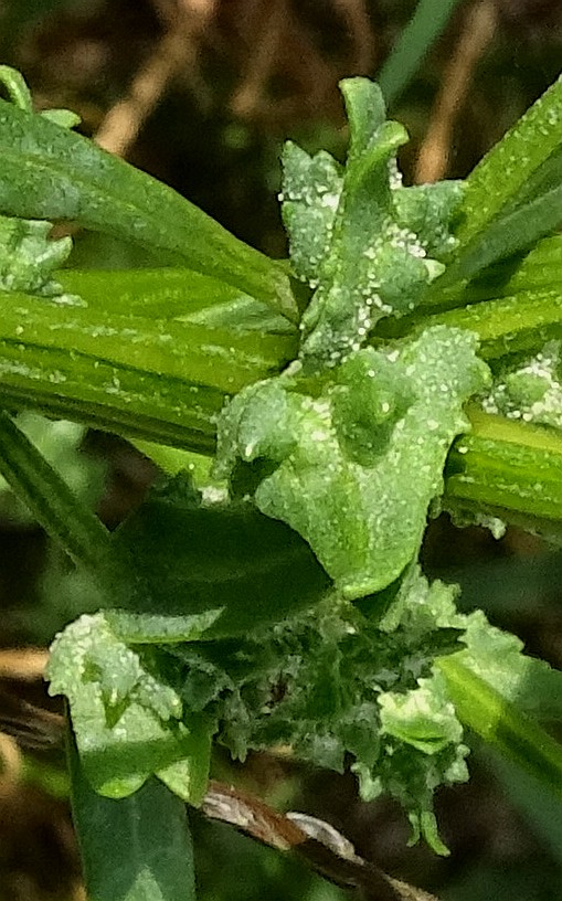 mit aufrechten Ästen, anfänglich mehlig bestäubt, verkahlend