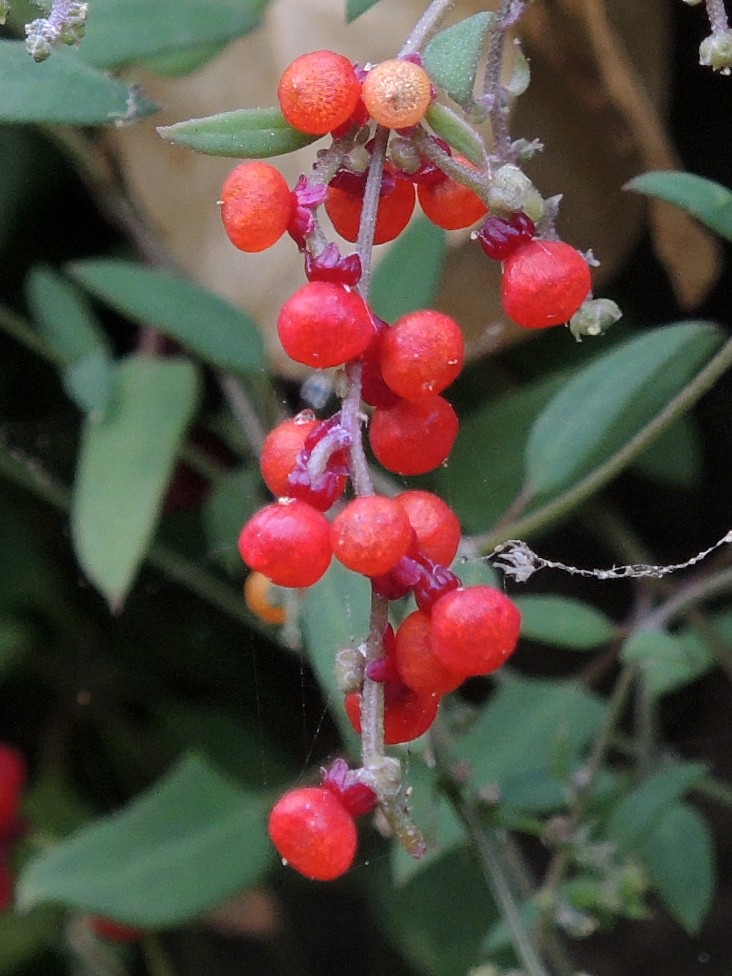 Beeren orange oder leuchtend rot, 3 - 5 mm im