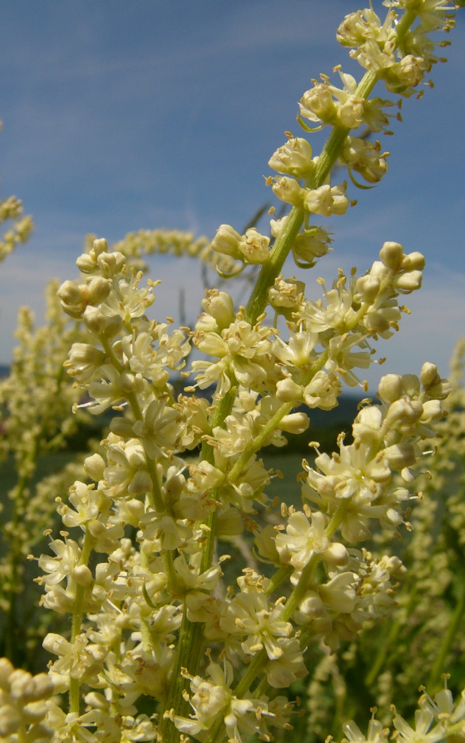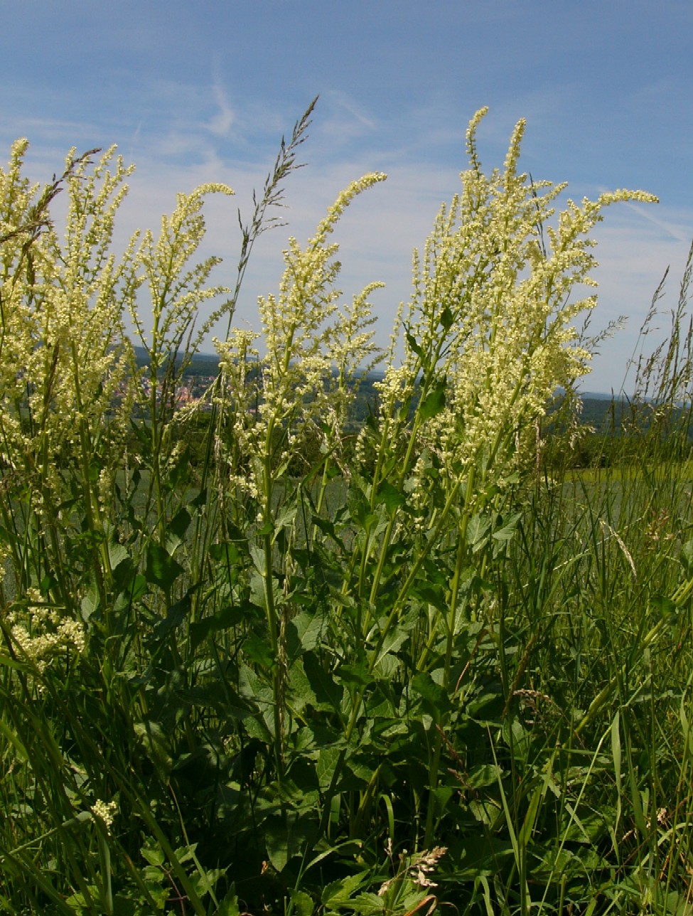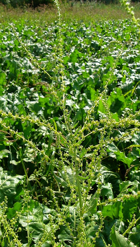 Pflanze 50 - 150 cm groß Im ersten Jahr wird nur eine Blattrosette mit ca. 20 breitflächigen, ca. 30 cm großen Blättern ausgebildet, im 2. Jahr bildet sich ein ca. 1,5 m hoher, verzweigter, ähriger Blütenstand Perigon grün oder weißlich, nicht bemehlt Blüten zwittrig, mit 5 Perigonblättern 2 - 3 Griffeln und 5 Staubblättern Früchte oft von dem bleibenden Perigon käfigartig umschlossen Stängelblätter lanzettlich bis dreieckig Grundblätter rosettig, lang gestielt Wurzel oft rübenartig verdickt
