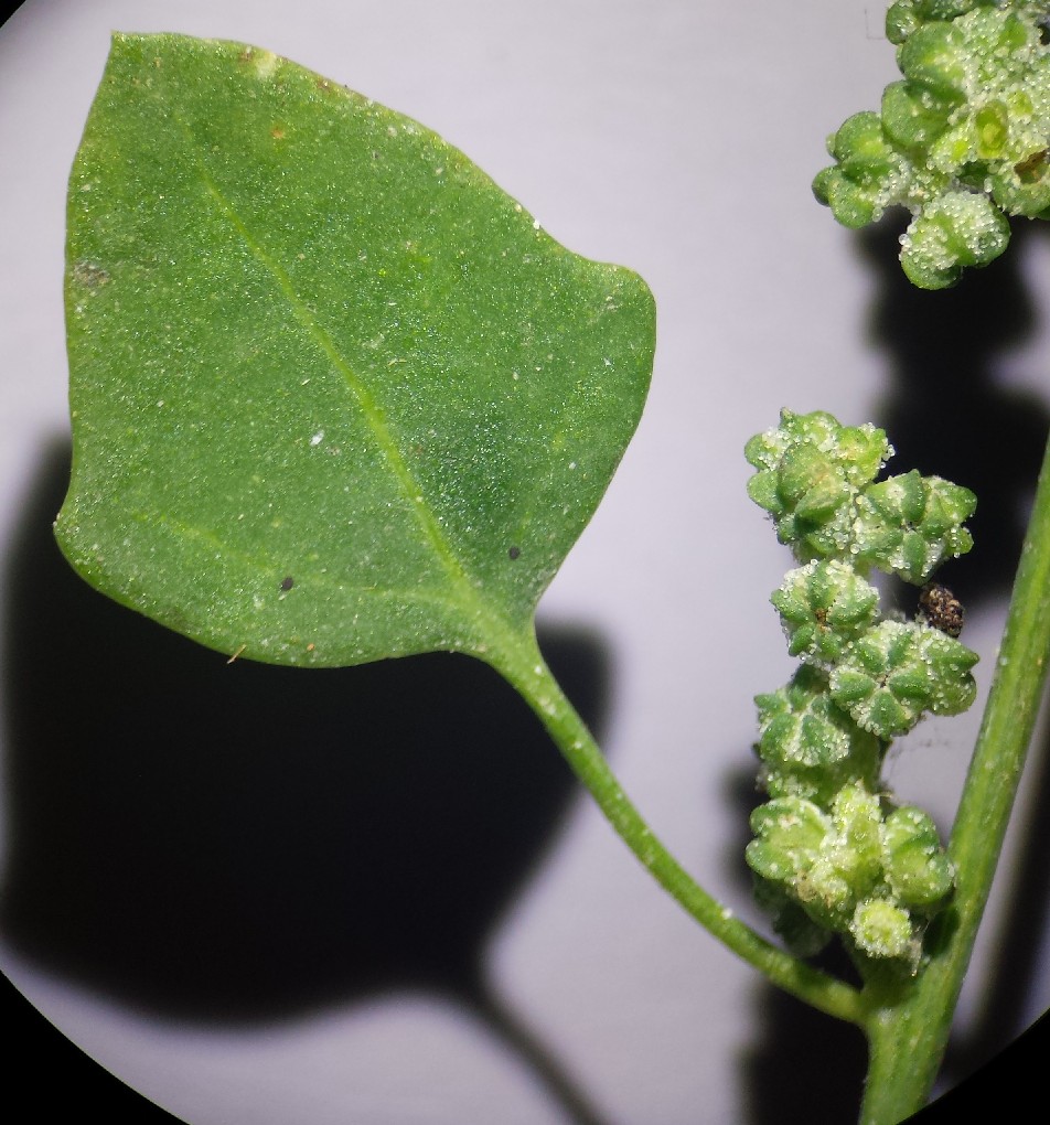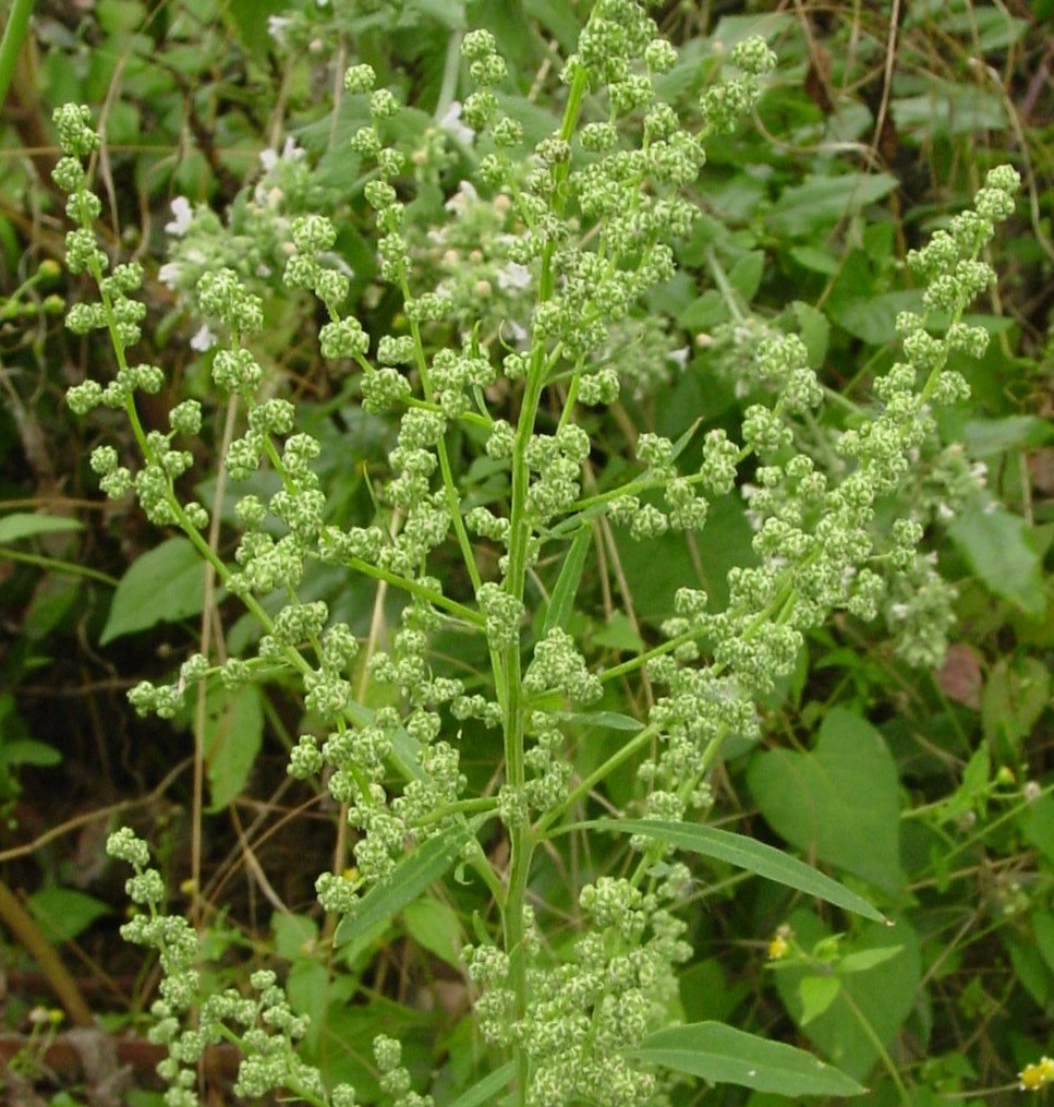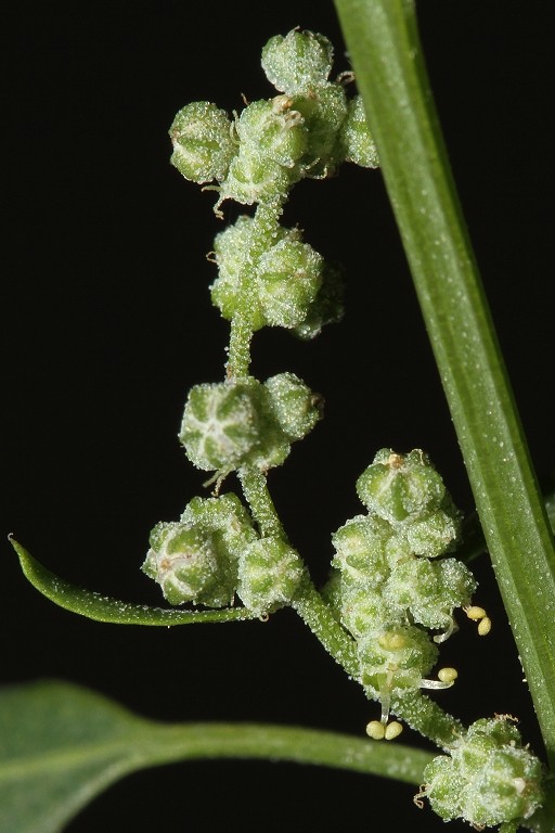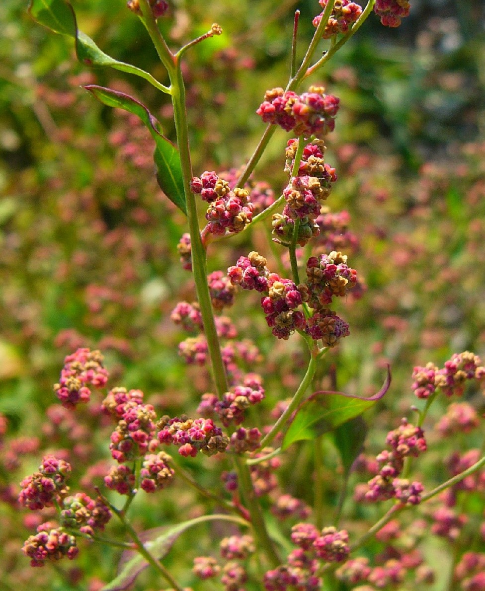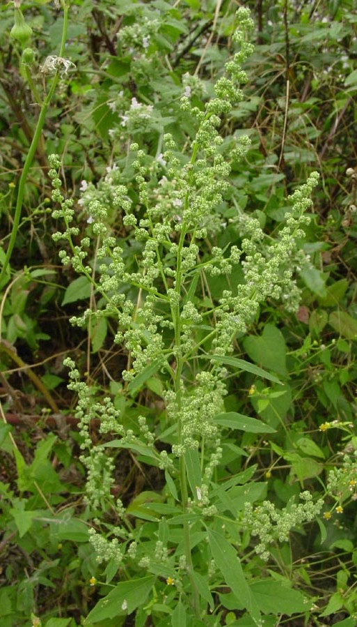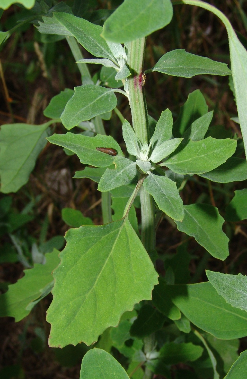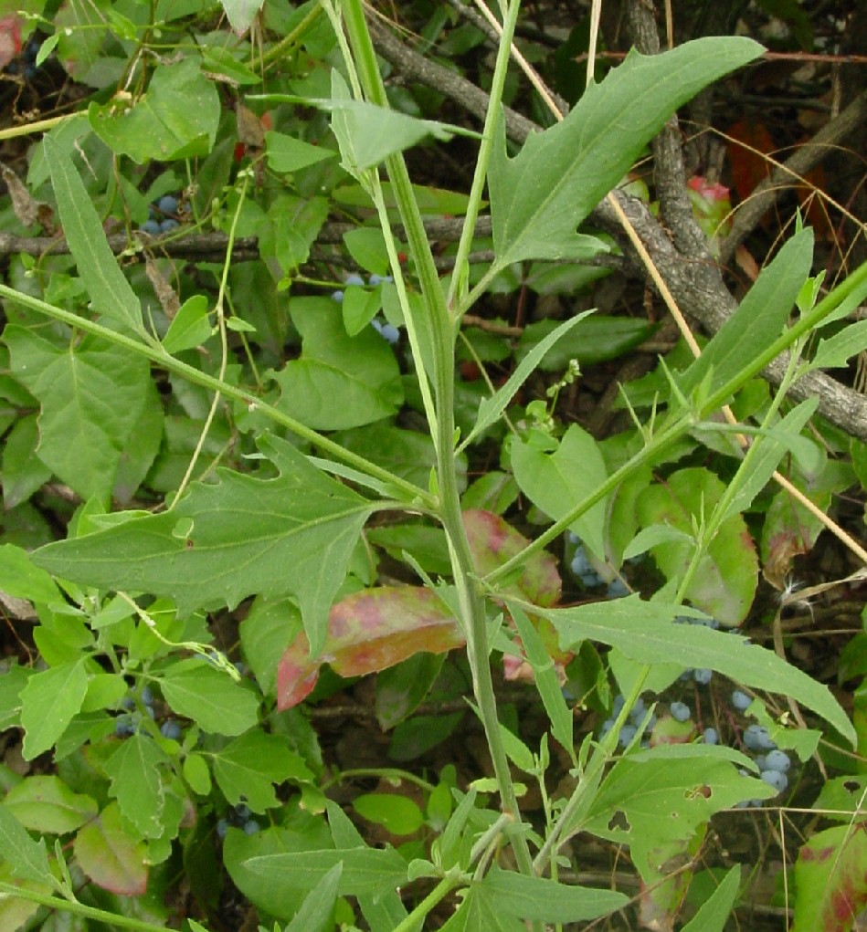 Pflanze 30 - 100 cm groß Blütenstand locker, wenigblütig, am Ende des Blütenstands oft gabelästig, teilweise mit deutlich gestielten Einzelblüten, Perigon und Blütenstiele wenig bemehlt, Reife Frucht im Perigon nicht sichtbar, obere Blätter meist lanzettlich, ganzrandig,