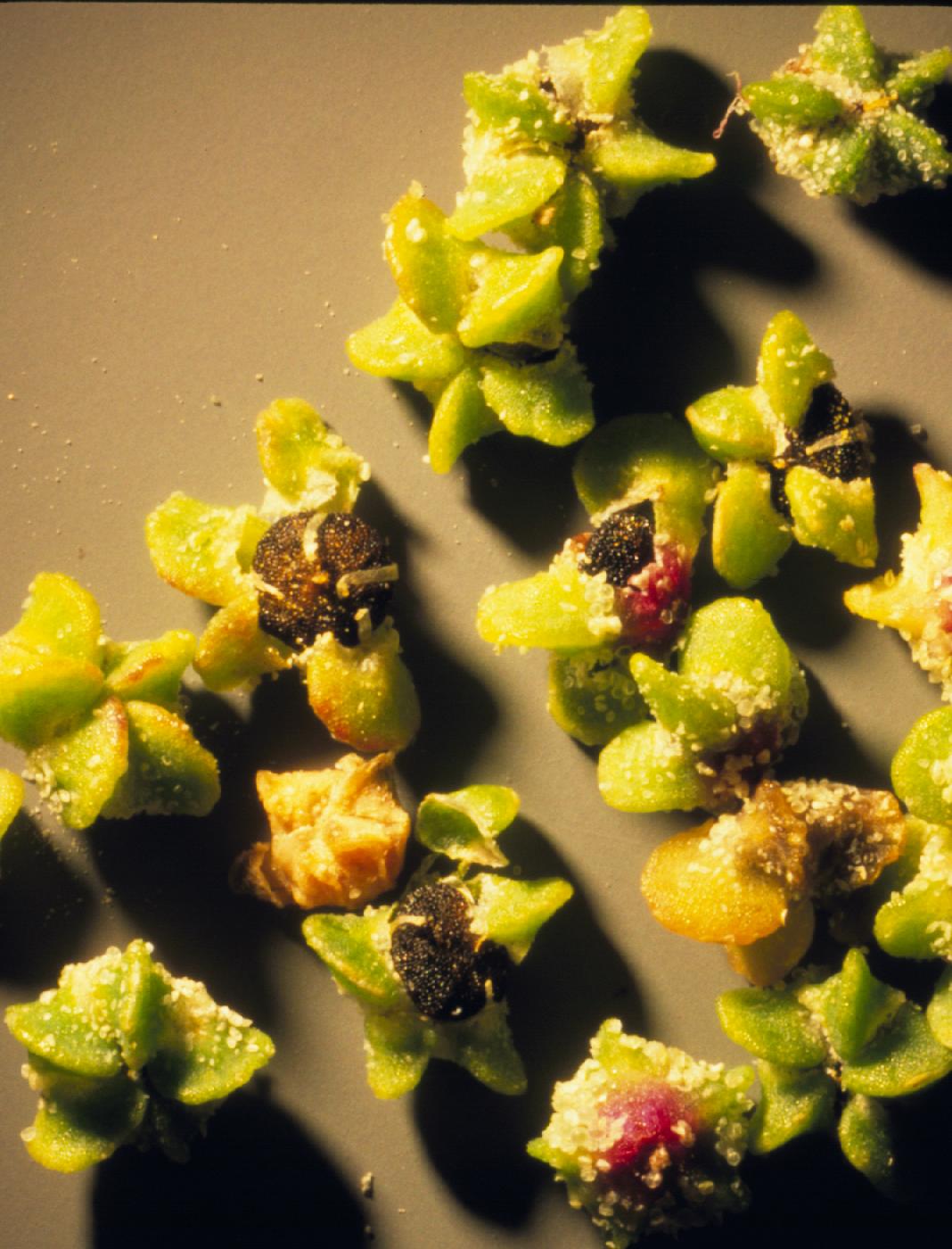 Narben Reife Frucht im Perigon nicht sichtbar Samenschale glatt, ohne bienenwabenartige Gruben