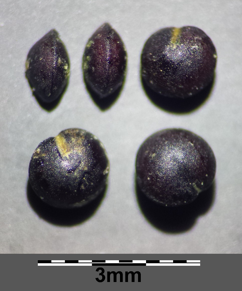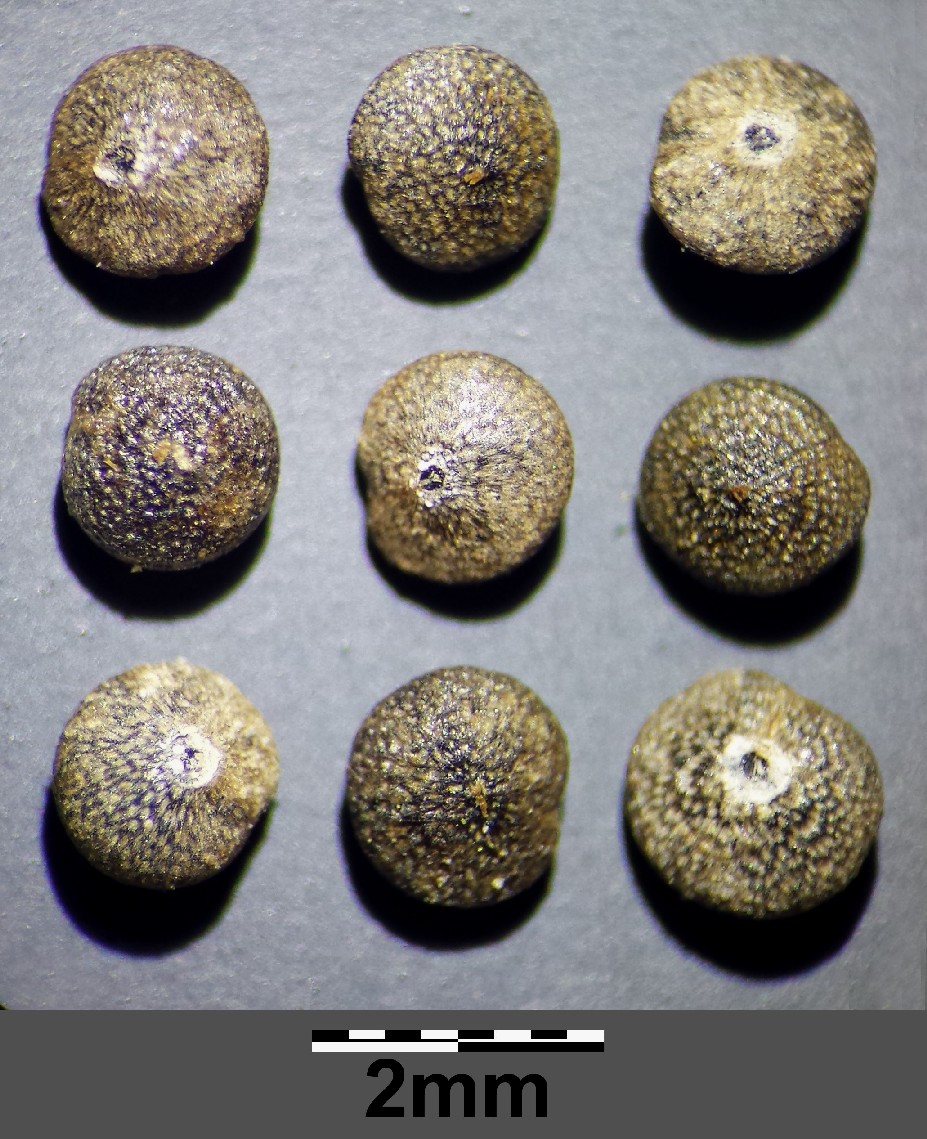 Samen horizontal, papillös, linsenförmig, um Umriss rundlich, am Rand scharf gekielt