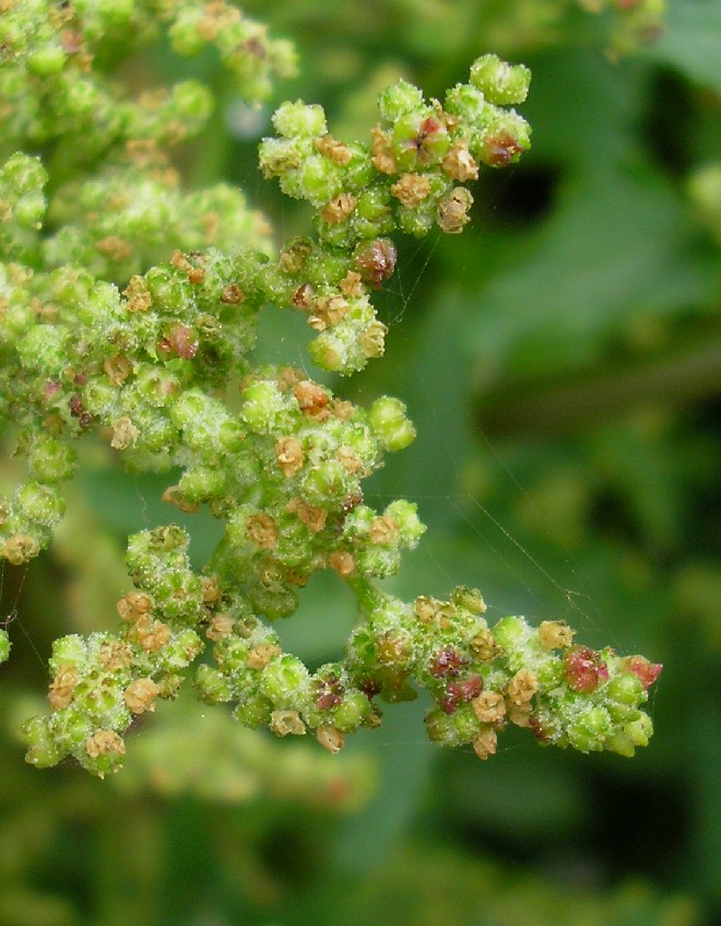 Pflanze 30 - 80 cm groß Blütenstand breit rispig verzweigt, +/- unbeblättert Blütenstand ährig oder traubig, Blüten mit 5 wenig bemehlten Perigonblätterm 5 Staubblättern und 2 Narben
