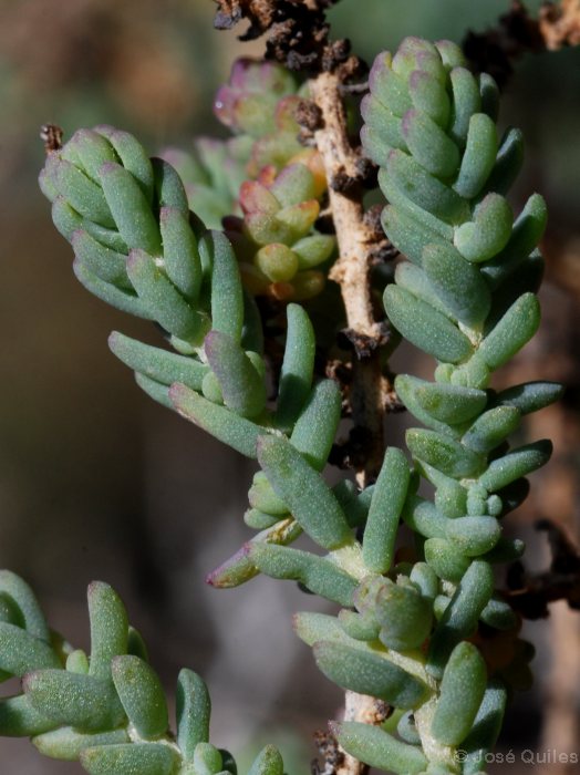 Blätter zylindrisch, 2 - 5 mm lang, 0,5 - 1 mm breit, fleischig, stumpf