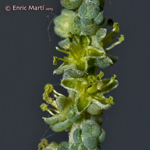 Perigon kugelig, fleischig, kahl, die Blüten bzw. die Frucht einschließend