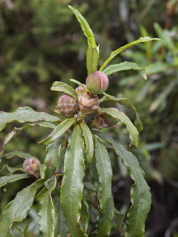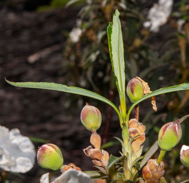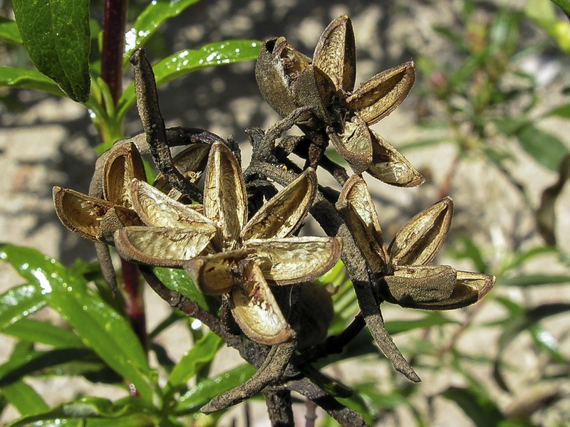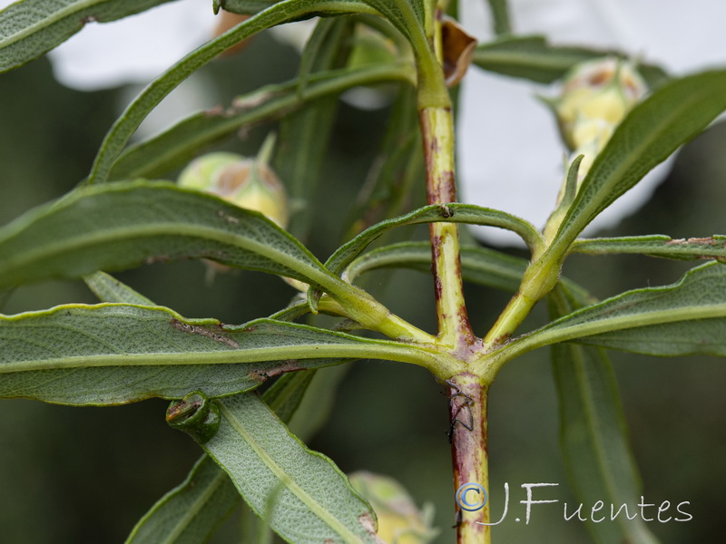 Bis 50 cm hoher Strauch Blüten ohne rotvioletten Fleck am Grund, Griffel unauffällig Blüten mit 3 Kelchblättern und 2 breiteren Hochblättern Kapsel 6- -fächerig Blätter sitzend, eilanzettlich, glänzend, stark klebrig Blattadern auf der Oberseite deutlich sichtbar Blattunterseite dicht weißfilzig und drüsig