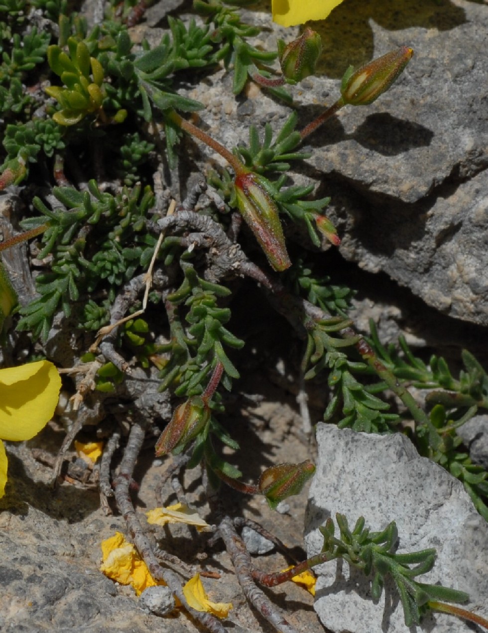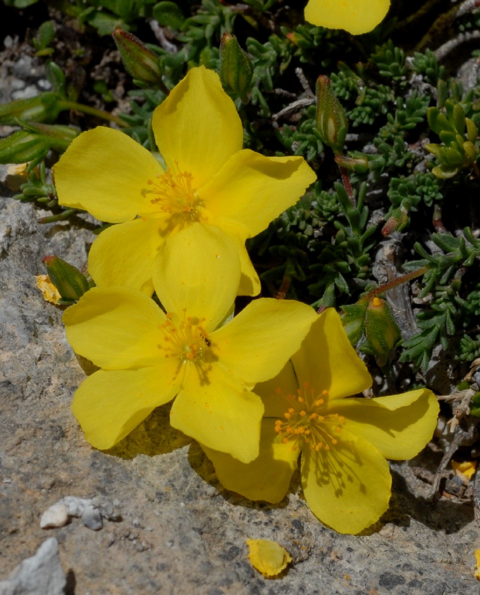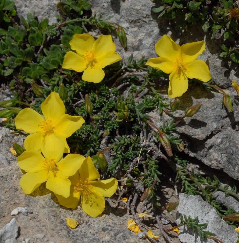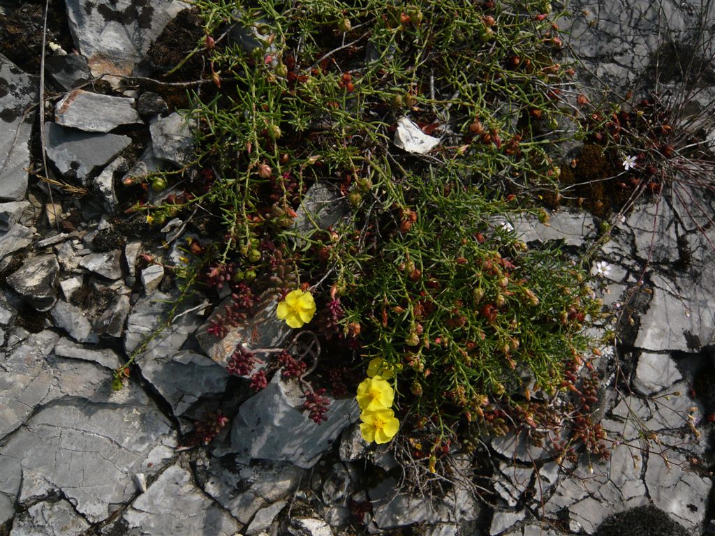 V - VII, Felsen (1400 - 2100 m) Synonyme: English name: Weltweite Verbreitung: In Kreta kommt nur Fumana paphlagonica ssp alpina (Janchen) Greuter vor, weswegen sich die Beschreibung auf diese Unterart bezieht. Die Nominatform Fumana paphlagonica ssp. paphlagonica Bornm. & Janchen ist ein Endemit der Türkei und ist nach Flora of Turkey weißfilzig behaart. Paphlagonien ist der antike Name einer Landschaft am Schwarzen Meer, mit einer Ausdehnung von 100 x 400 km. Nach Mountain Flora of Greece nur eine Hochgebirgsform von Fumana procumbens.