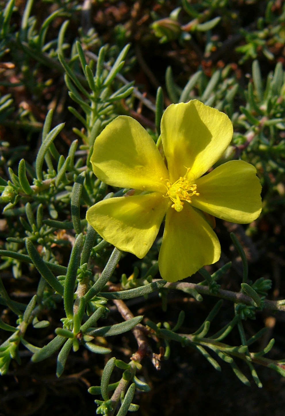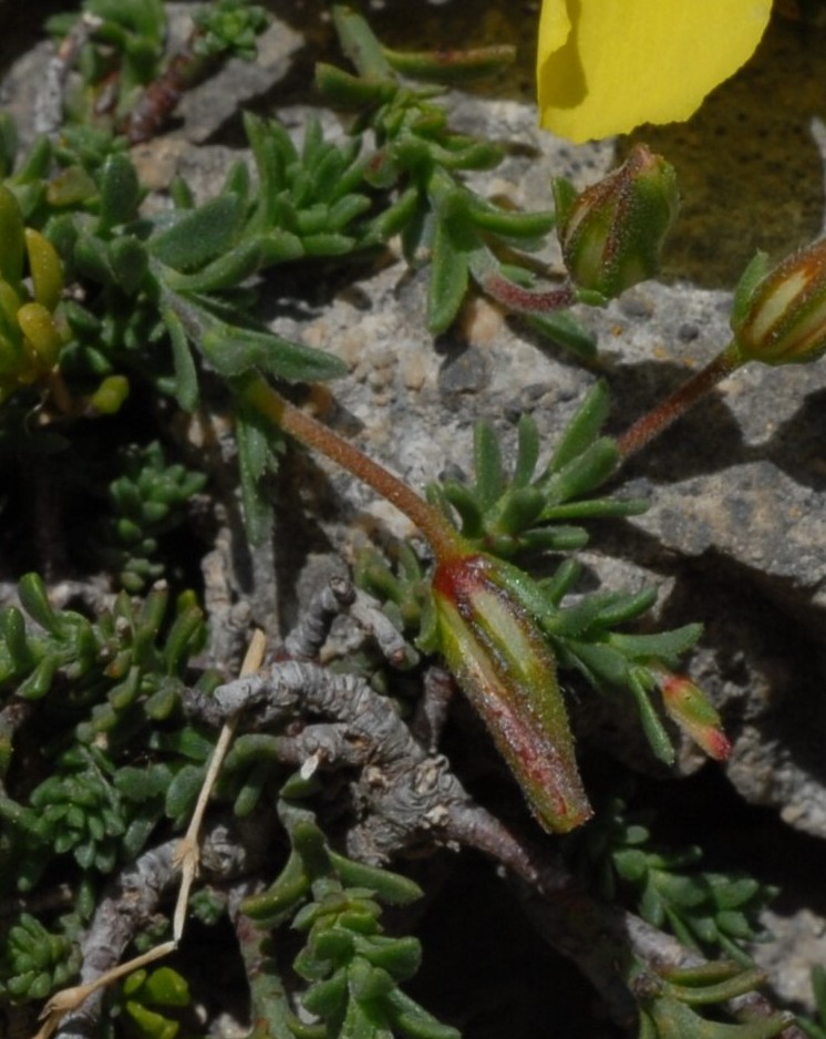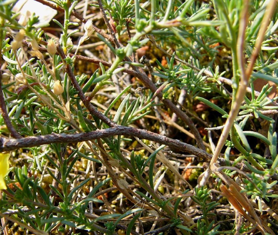 Fumana - Blätter linealisch, wechselständig, ohne Nebenblättern, Äste nur mit 1 Blüte, Tragblätter der Blüte nicht verkleinert, blattähnlich, Blütenstiele und Kelchblätter weißlich bereift, nicht drüsig