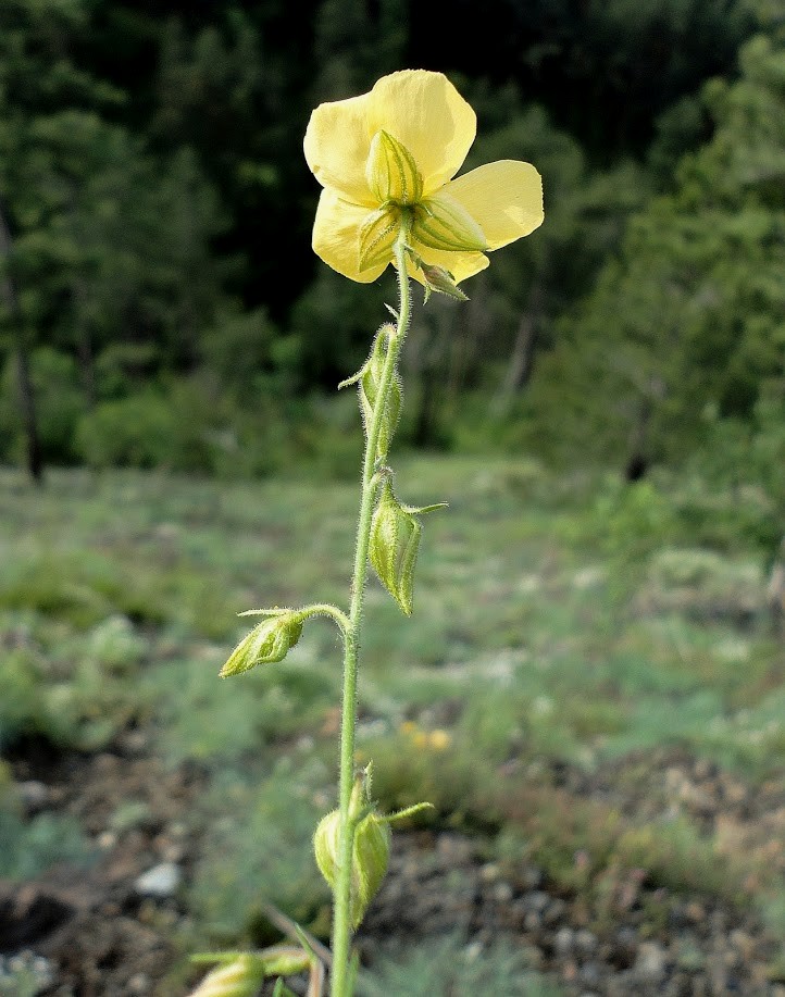 Blüten gelb, äußere Staubblätter ohne Staubbeutel Fruchtstiele1,5 - 2 mal länger als der Kelch Kapsel vollständig vone den deutlich