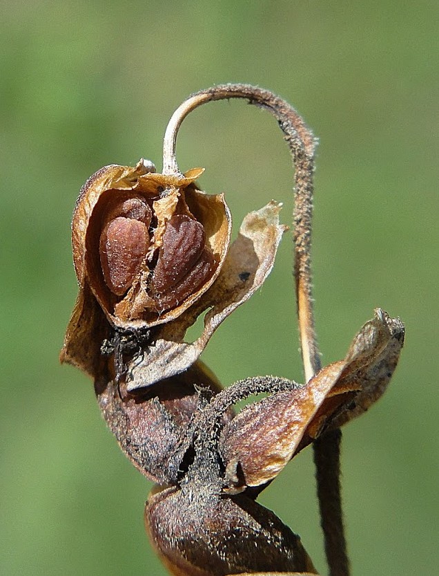Kapsel bleibt auch während des Ausstreuens der Samen mit dem Kelch verbunden, Klappen sind dann weit geöffnet und abstehend, Fruchtstiele drüsig