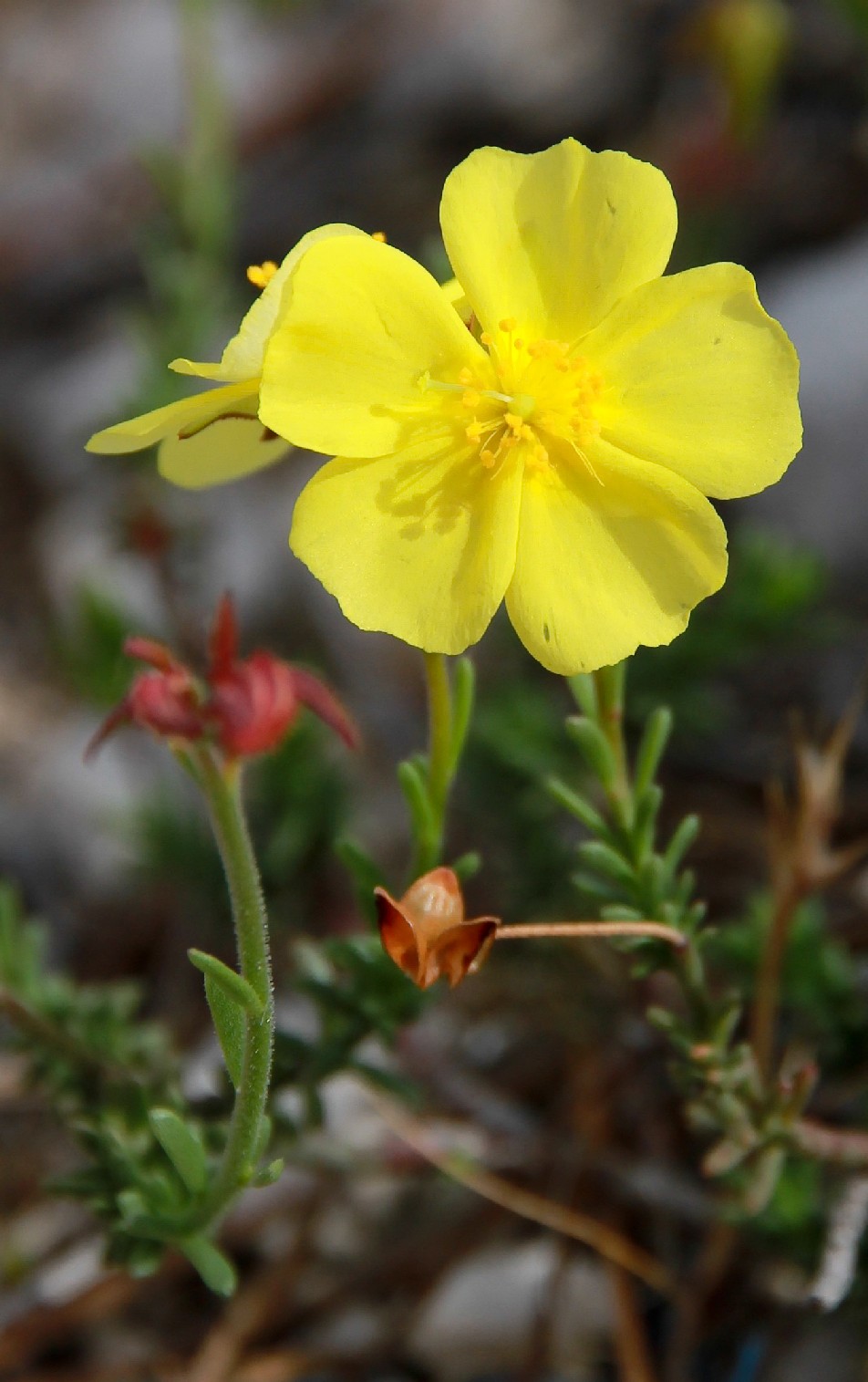 Blütenstand und Kelch borstig- drüsig Blüten gelb, äußere Staubblätter ohne Staubbeutel