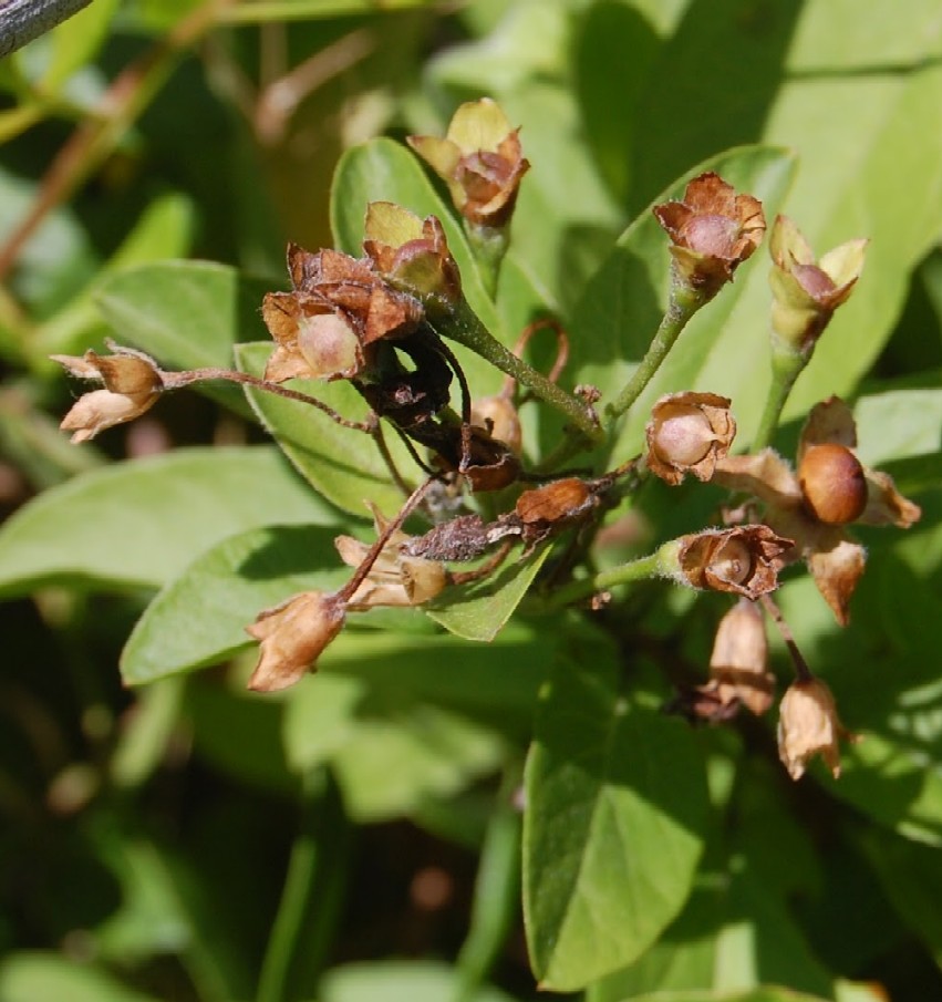 eiförmig, ganzrandig, deutlich gestielt, Stängel aufrecht, verholzt,