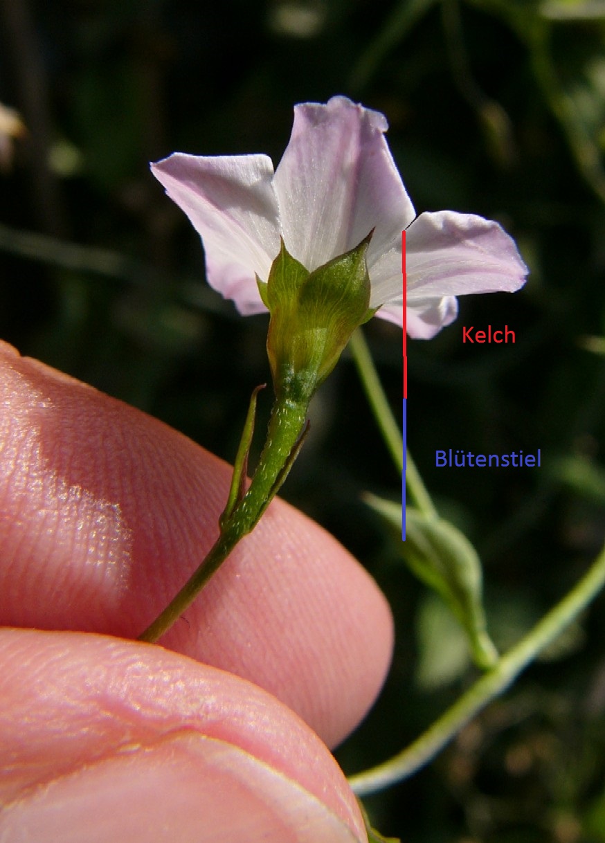 2 Blütenstiele wenig kürzer oder länger als die Kelchblätter, Blüten hellblau, weiß oder rosa