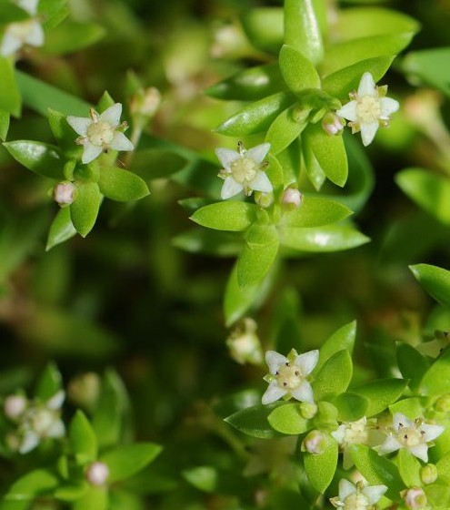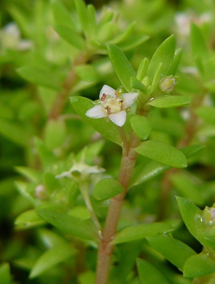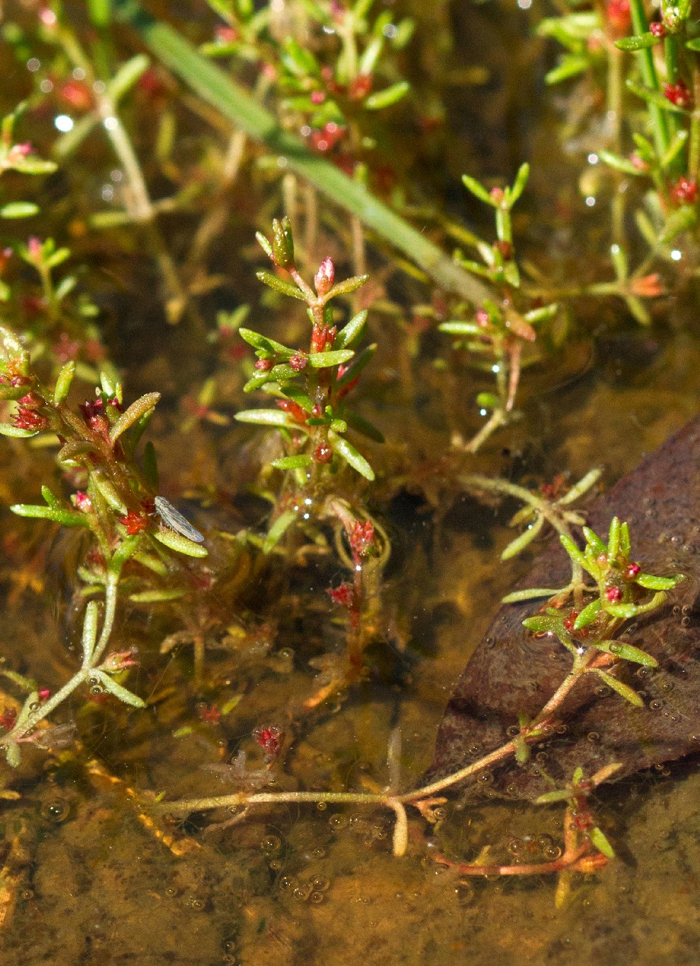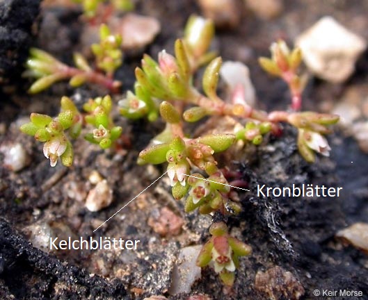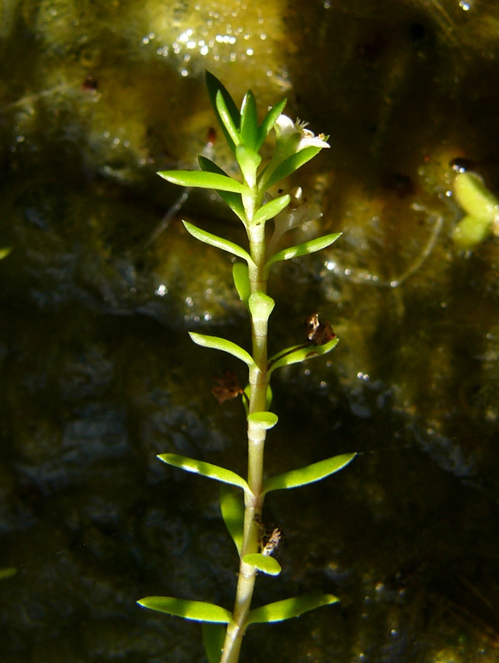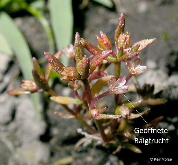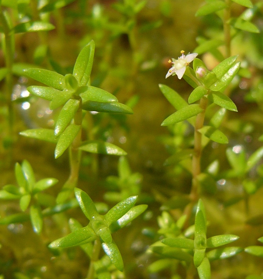 Crassula- Wasserpflanzen, Kronblätter größer als die Kelchblätter, Früchte mit vielen Samen