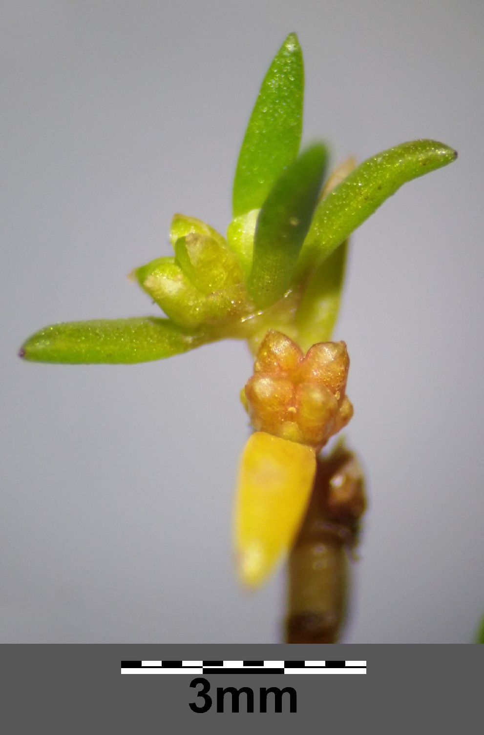 Fruchtblätter 4, spreizend, Früchte mit vielen Samen Blätter stumpf, 2 - 4 mm lang, 1 - 2 mm breit