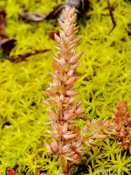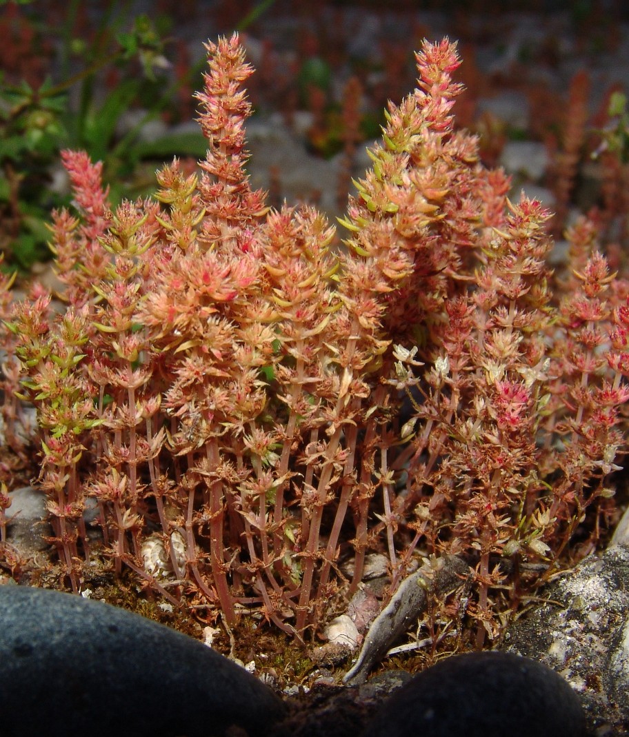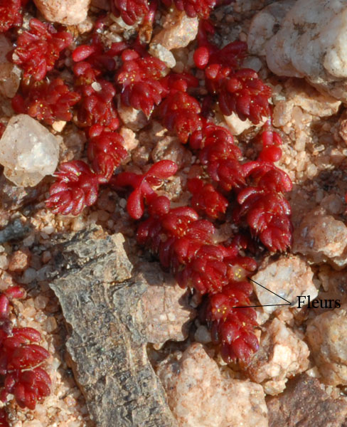 Blüten dreizählig, +/- sitzend Blätter eifömig, oft rötlich, 1 - 2 mm lang > 1