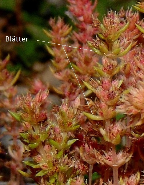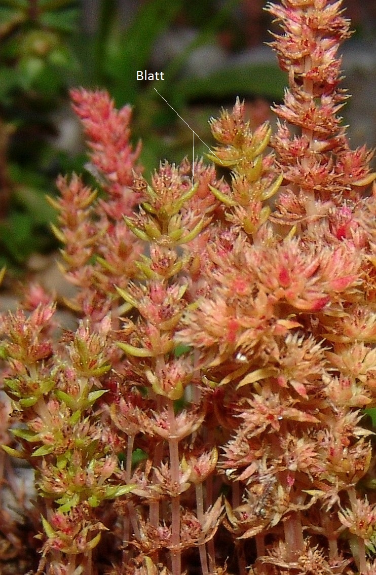 gestielt Blätter lanzettlich, oft rötlich, 3 - 7 mm lang > 2