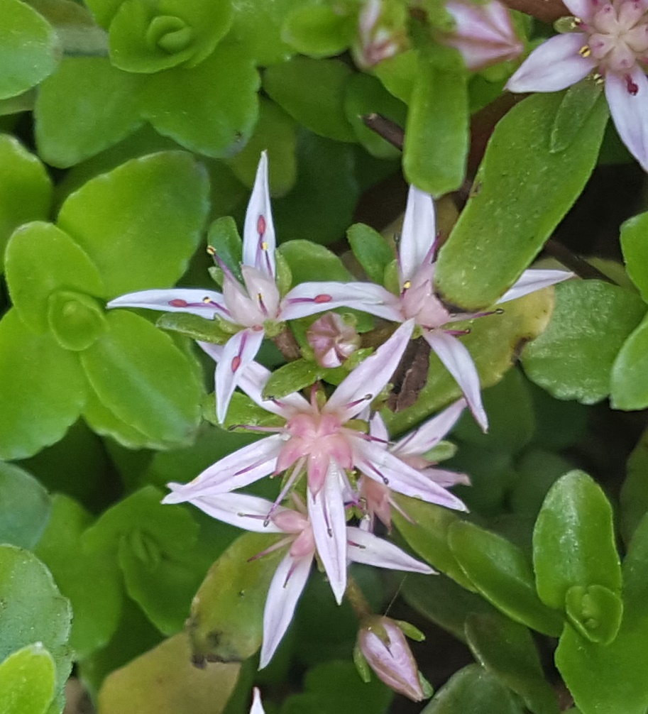 Blüten mit 5 Kron- und 10 Staubblättern, Kronblätter, rosa, spitz,