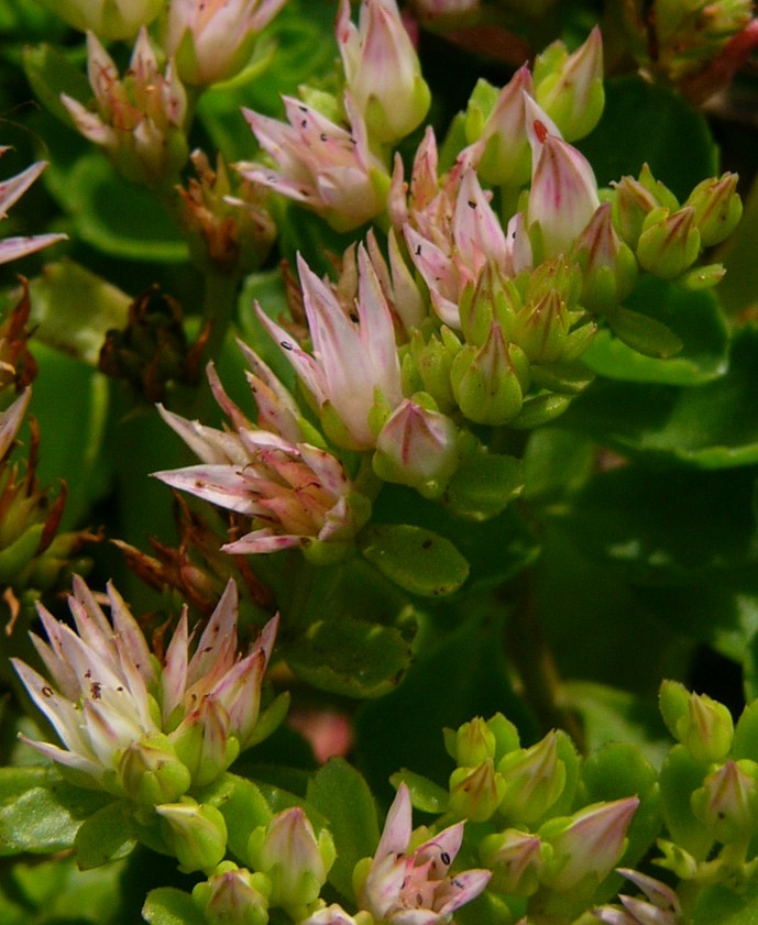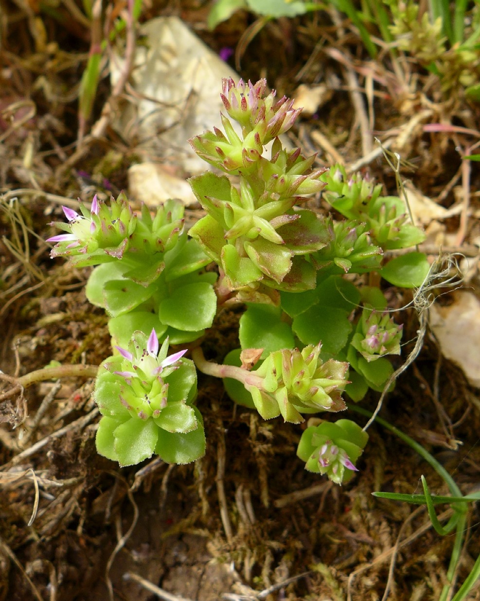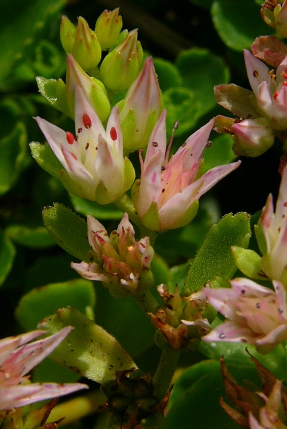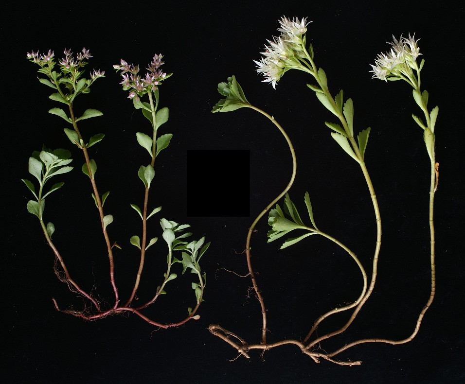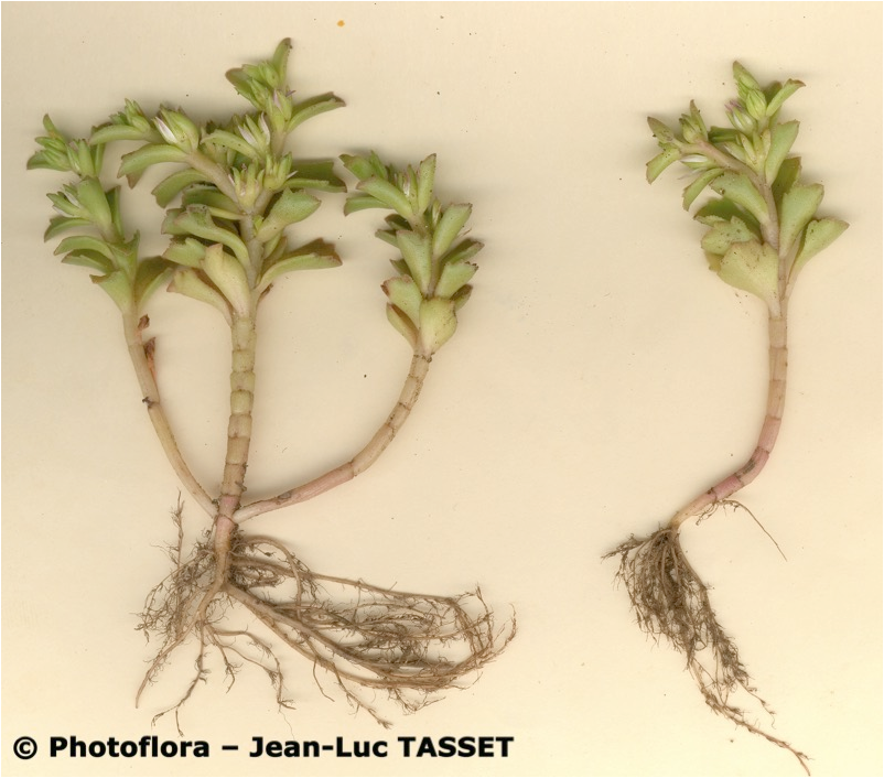 VII - IX, Felsen, Ruderalstellen, Mauern, Bahnanlagen (0 - 2700 m) Synonyme: English name: Nom francais: Nome italiano: Verbreitung in Deutschland: Gefährdung in Deutschland: Weltweite Verbreitung: Eingebürgert in: Etymologie: Vergleich Phedimus stoloniferus (links) und Phedimus spurius (rechts):