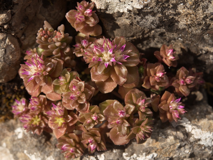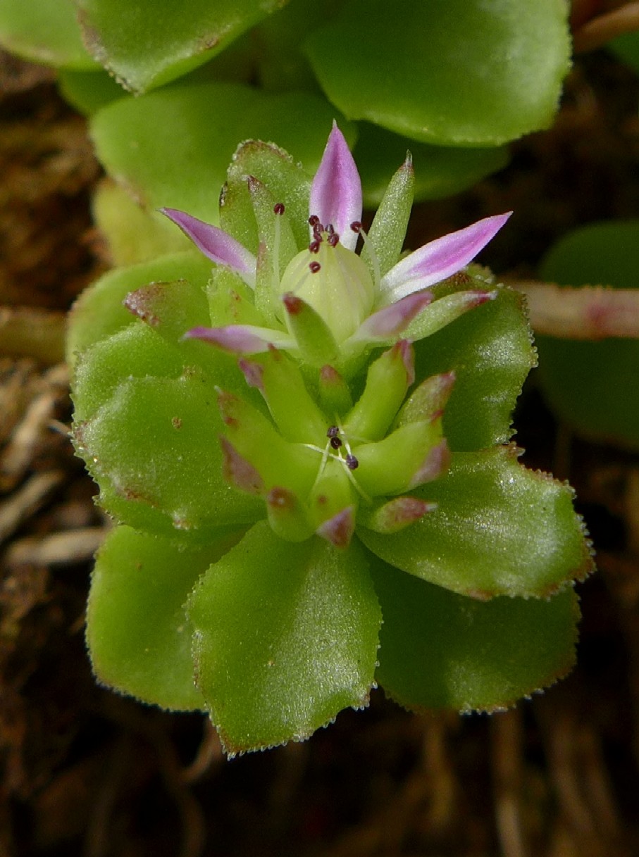 1 Kronblätter rosa, 5 - 8 mm lang, Blätter 5 - 10 mm lang gestielt, Blattrand kurz papillös