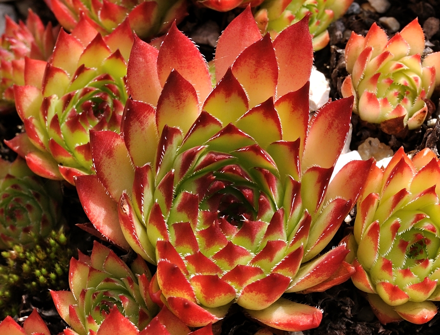 Unterarten von Sempervivum marmoreum mit kahlen Rosettenblättern