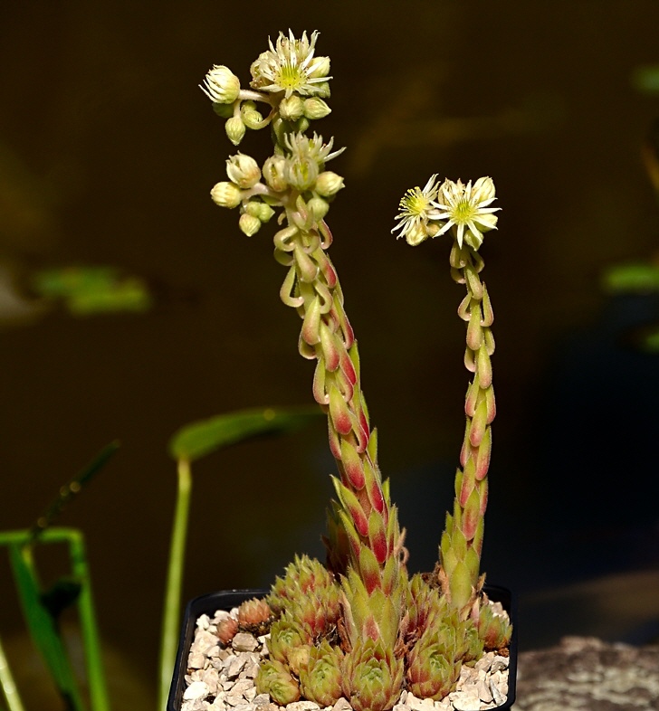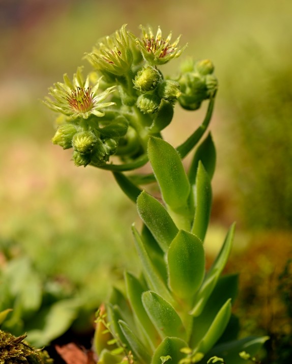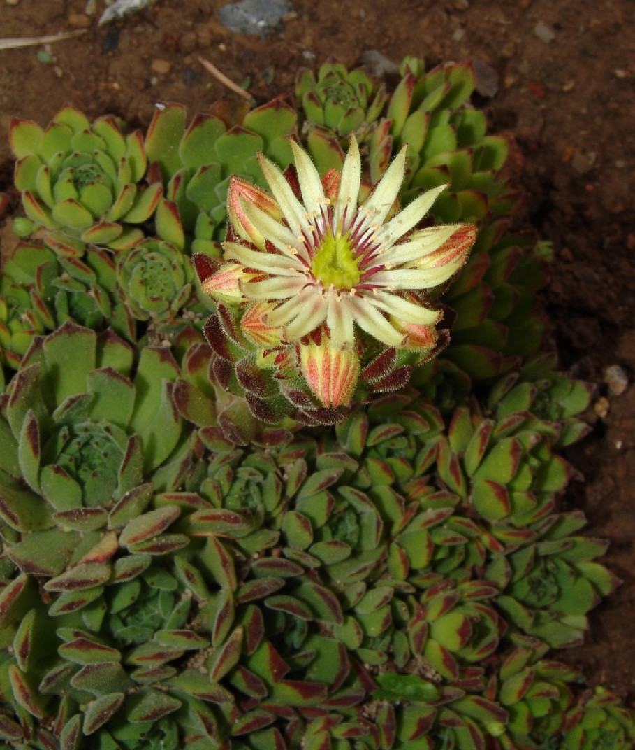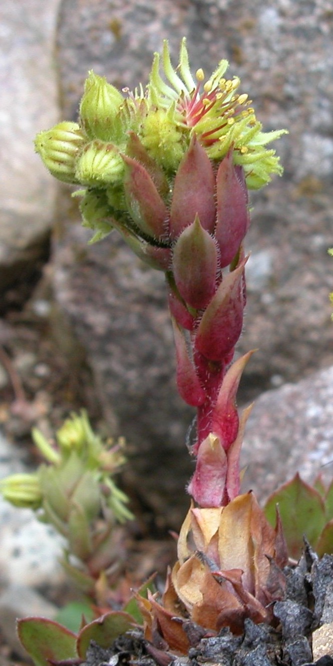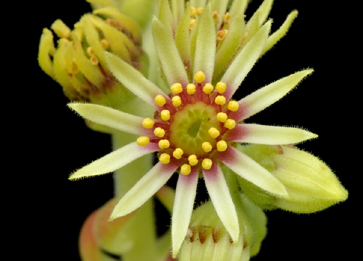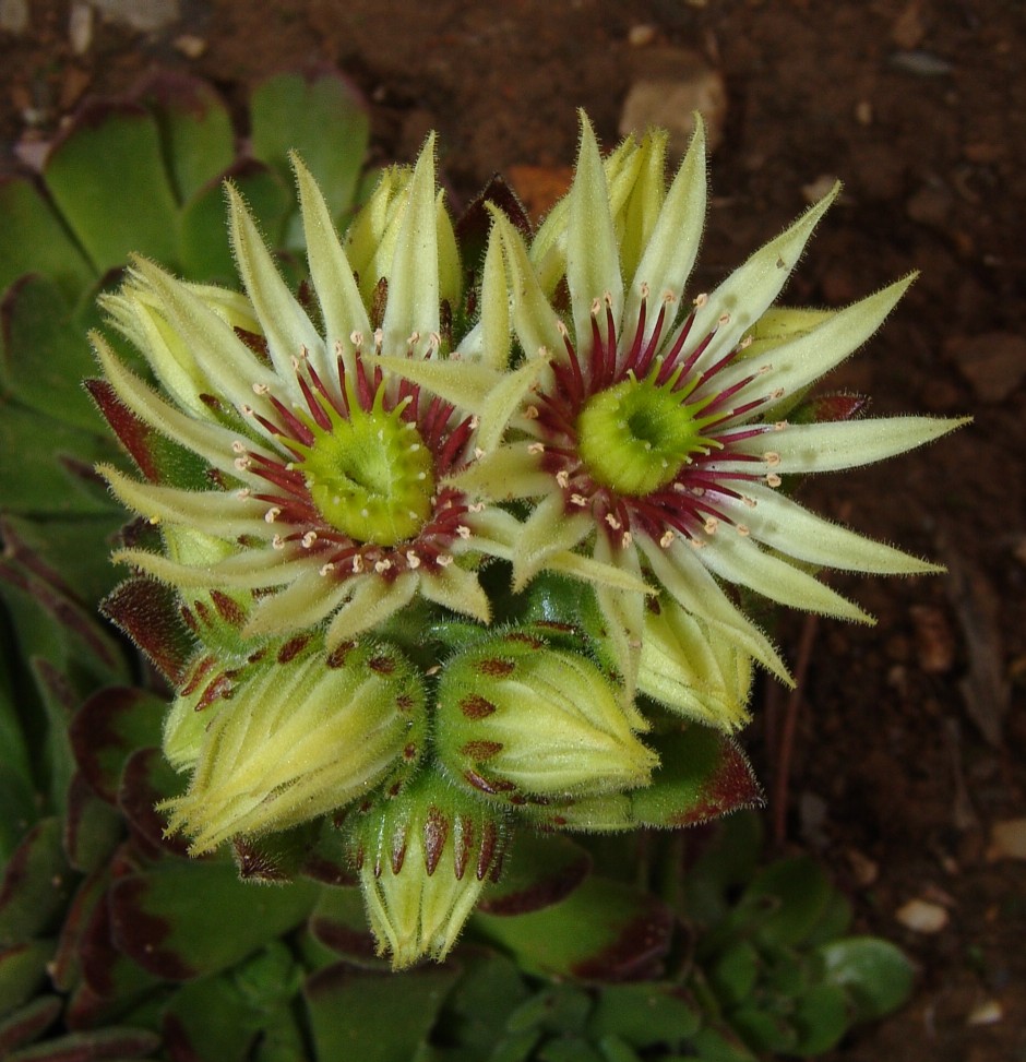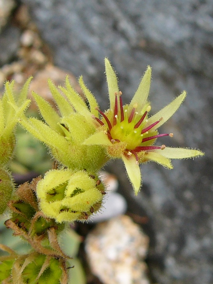 Sempervivum- Blüten gelb, Staubfäden rot
